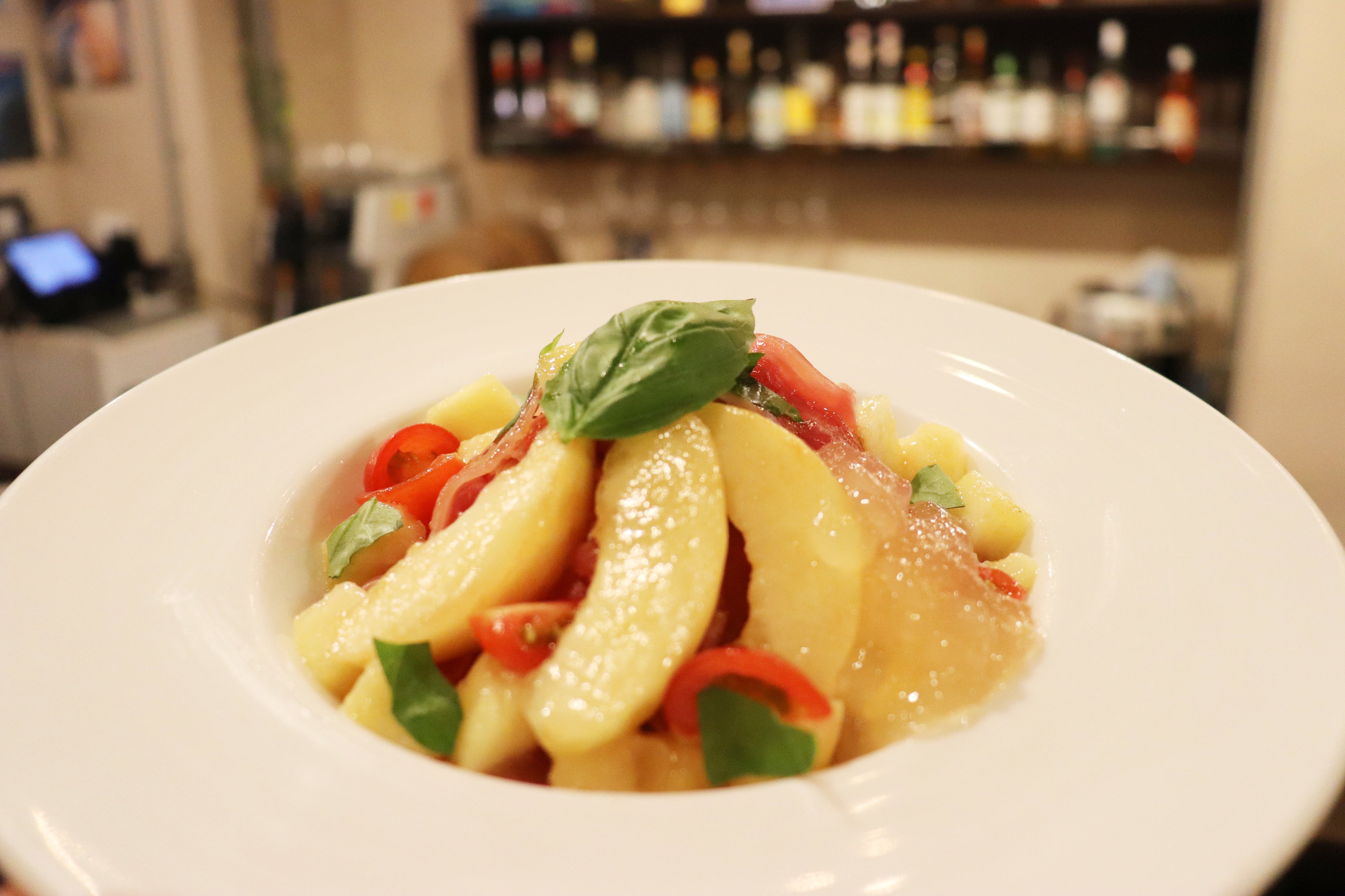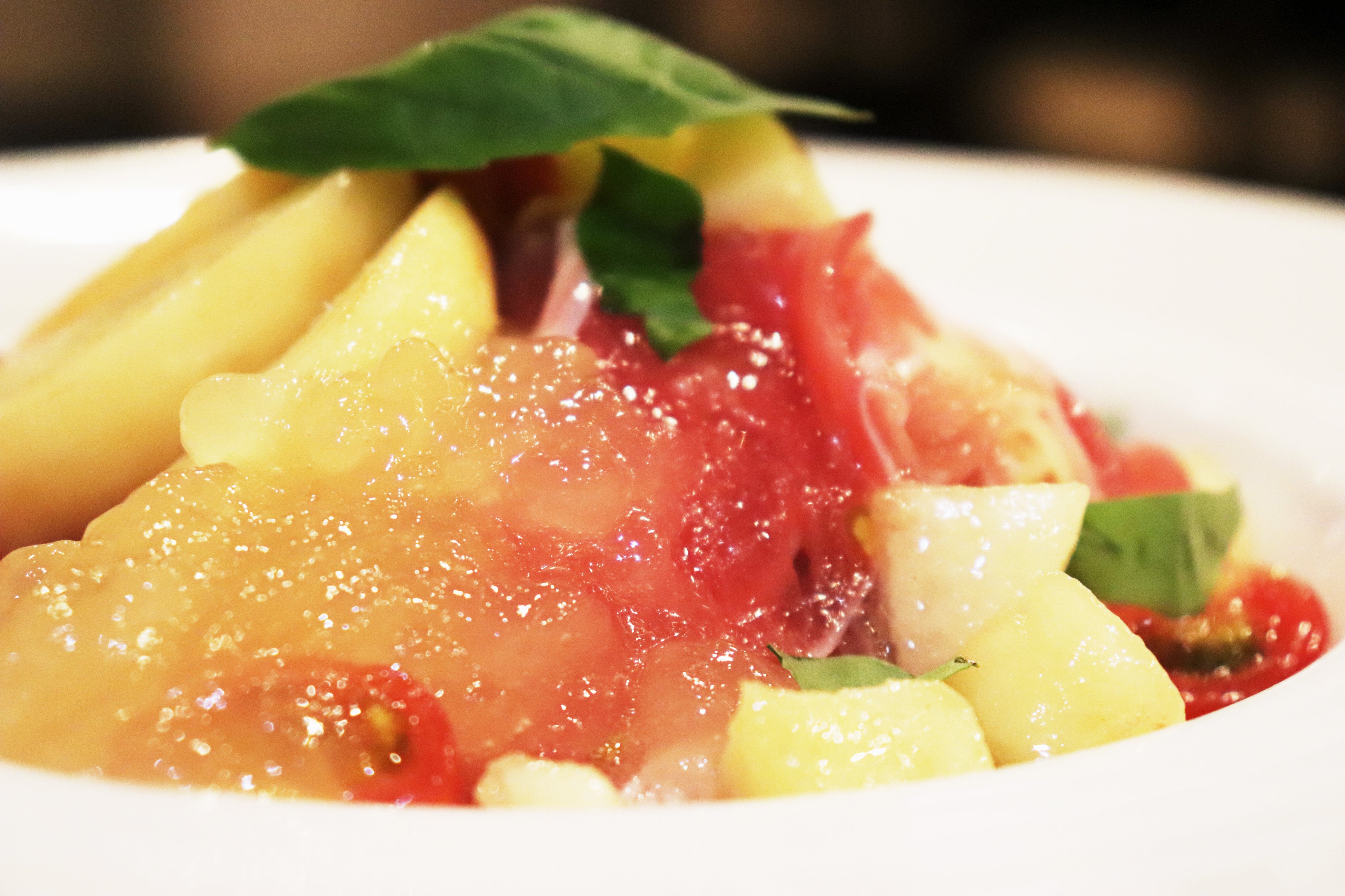 ミニトマトと、塩気を感じられる生ハムもたっぷり入り、食べる度に香る桃との相性は抜群!