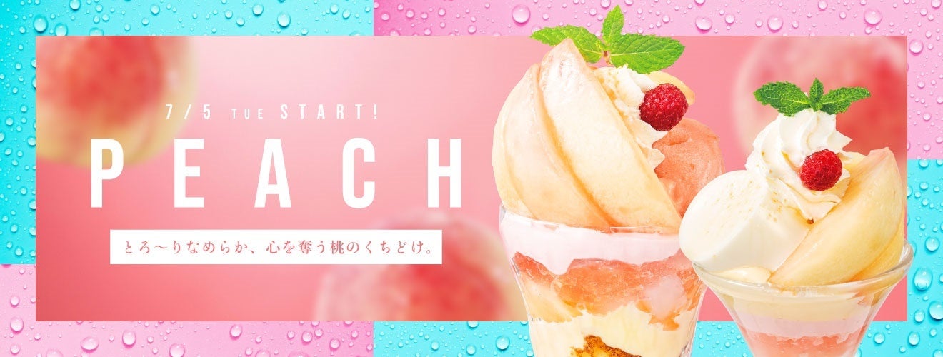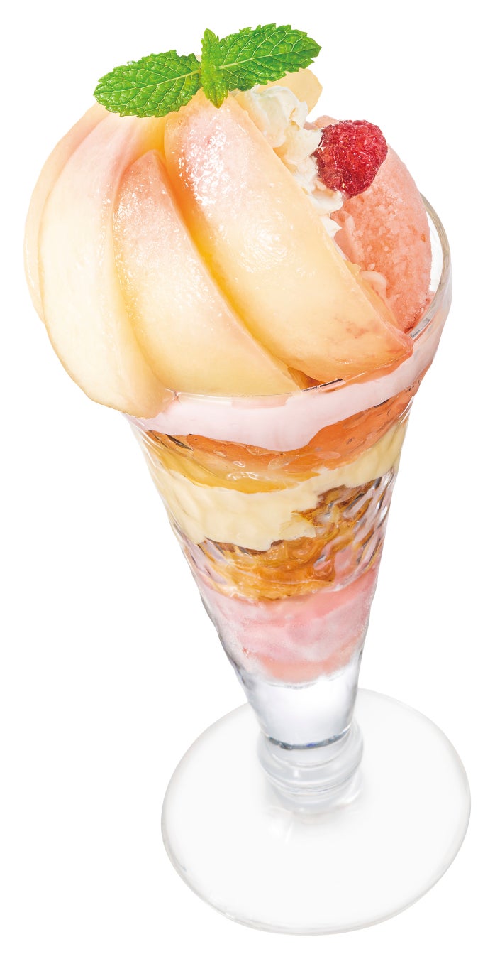 桃を贅沢に1/2玉以上使用し、ピーチソース、桃クリーム、ピーチゼリーなど、どこから食べても桃を感じられる食べ応えのあるサンデーや、大人気のミルクプリンと桃がコラボしたミニパルフェ、中にフレンチトーストが入った驚きのパルフェ、そして小さいながらも桃を楽しめるゼリー仕立てや、気温が上がると食べたくなるかき氷など、それぞれのシーンに合わせてぜひご賞味ください。