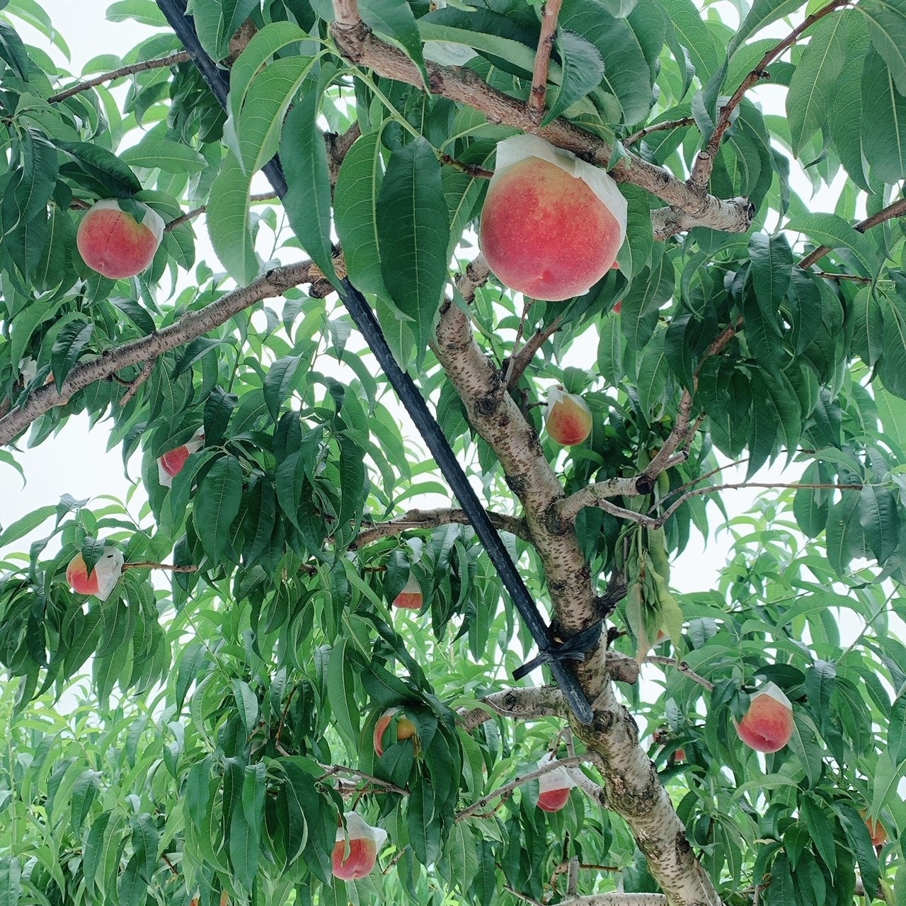 ひとつひとつの実に日光がじゅうぶん当たるよう、熟練の目で見極めながら手作業で丁寧に育てられた桃を、徹底した管理のもと出荷し、店舗で皮をむいてご提供します。