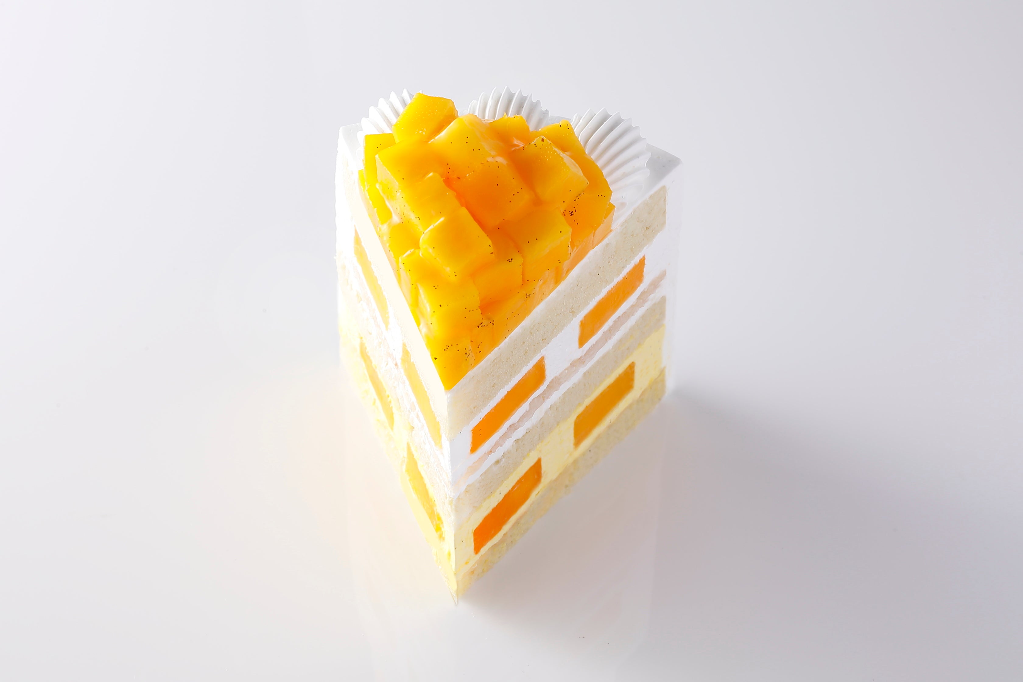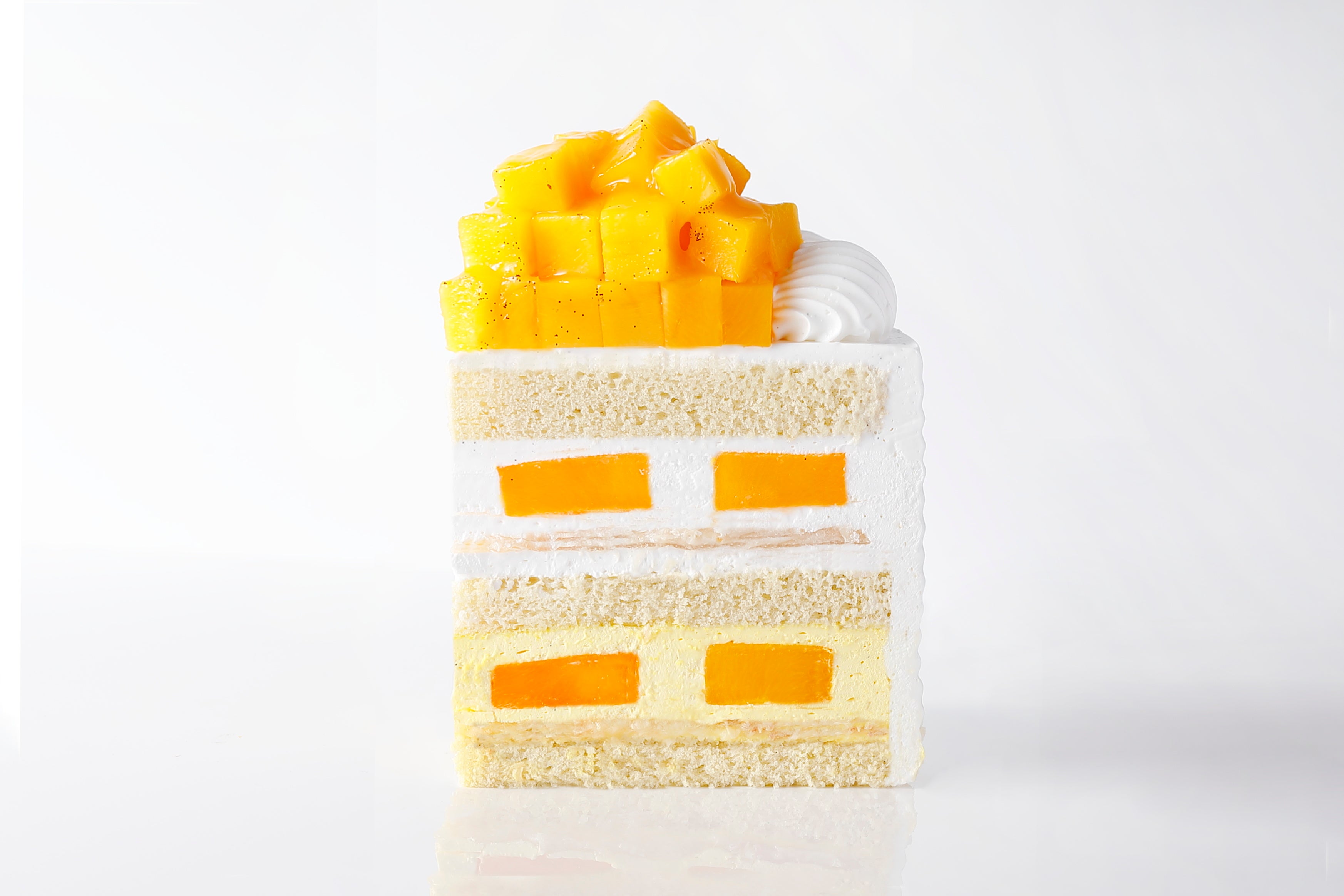 主役には”太陽の果実”とも称される国産アップルマンゴーを約1個丸ごと使用。マンゴーの濃厚な甘みを引き立てるクリームとして、新たに口当たり軽やかな九州大牟田産の生クリームを採用。2層目は香りをより一層引き立てるマンゴーとパッションフルーツ風味のクリームに仕上げました。