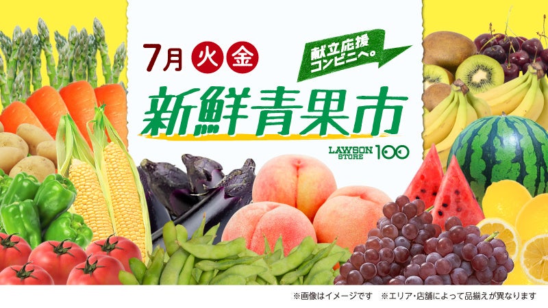 株式会社ローソンストア100(神奈川県川崎市)が運営する「ローソンストア100」(668店舗/2022年5月末現在)では、7月の毎週火曜日と金曜日に旬な野菜や新鮮な果物を取り揃える「新鮮青果市」を開催します。
