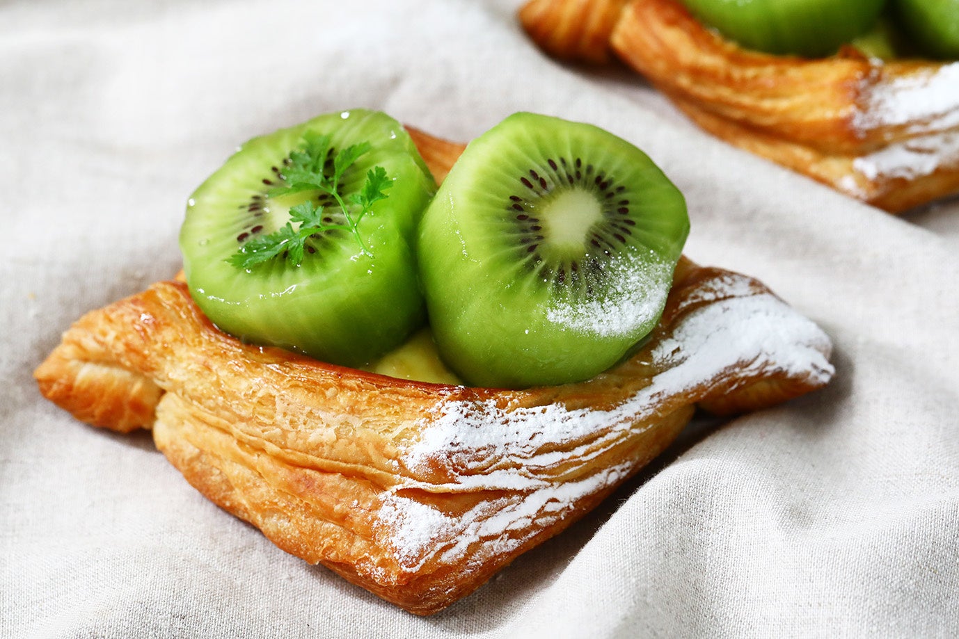 大きくカットしたキウイフルーツを豪快に丸ごと1個分トッピングした贅沢な「キウイのデニッシュ」。