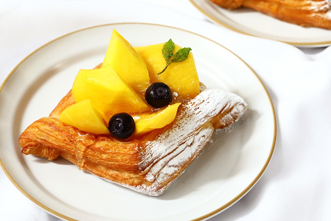 旬のフレッシュなマンゴーをトッピングした、夏らしいデニッシュが登場いたします。