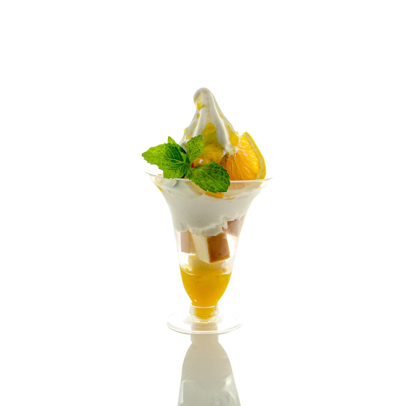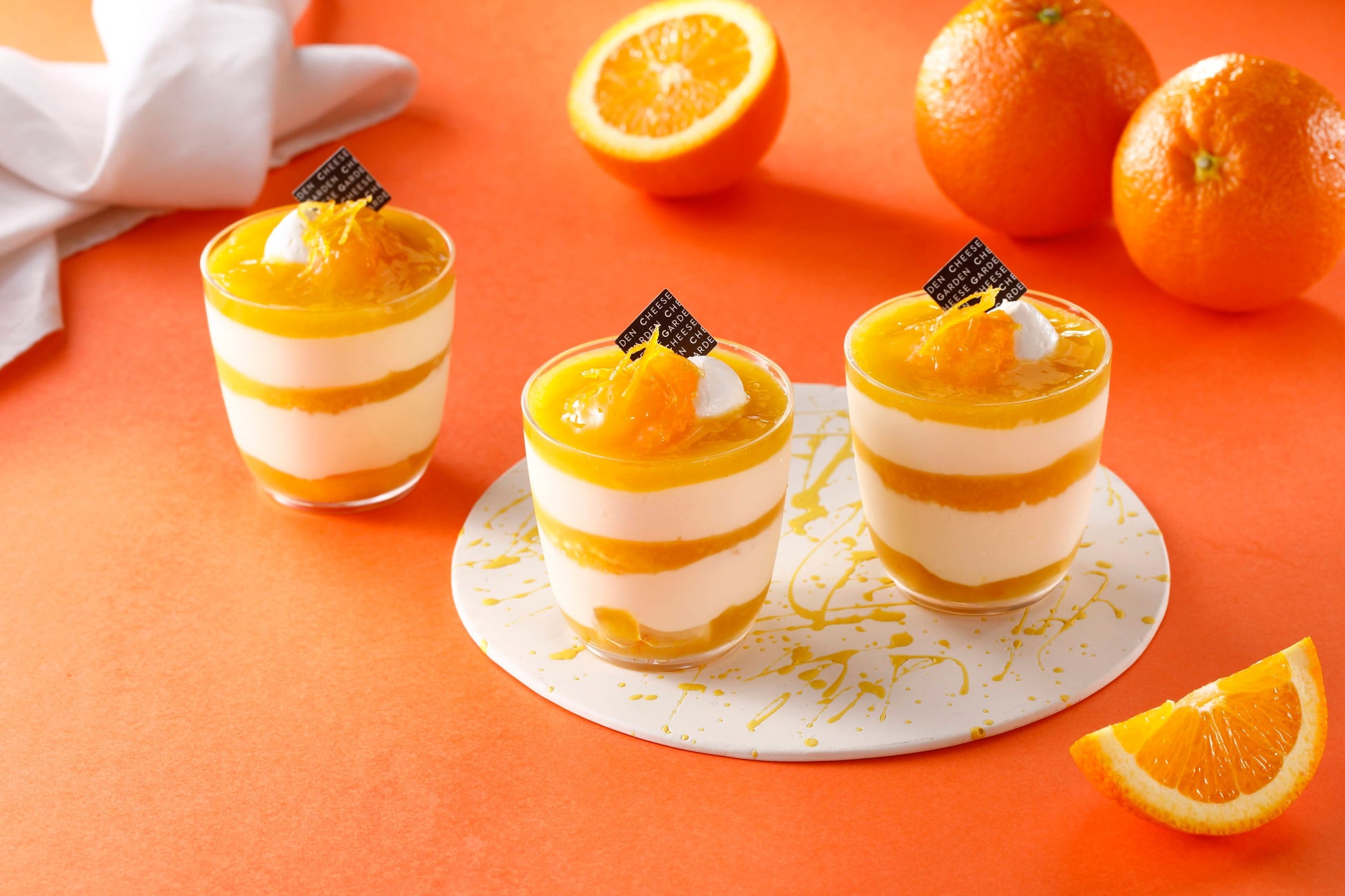 そして、新発売の『御用邸オレンジチーズケーキ』を使用した『オレンジパフェ』の発売もいたします。ダイス状にカットした『御用邸オレンジチーズケーキ』やオレンジジュレを中に入れ、上にはオレンジピールでほろ苦さ、オレンジの塩漬けで塩味を出すことでオレンジの甘酸っぱさだけでなく食べ進めるごとに味わいの変化をお楽しみいただけます。