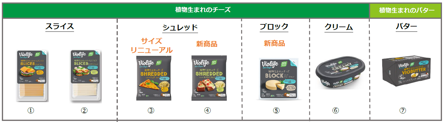 当社は2021年9月に関東地方1都6県で「Violife」家庭用5商品を先行発売し、2022年3月に販売エリアを全国に拡大しました。表1のとおり、今回の新たな2商品とサイズリニューアルした1商品を合わせ、2022年9月1日以降の家庭用シリーズは7商品となります。