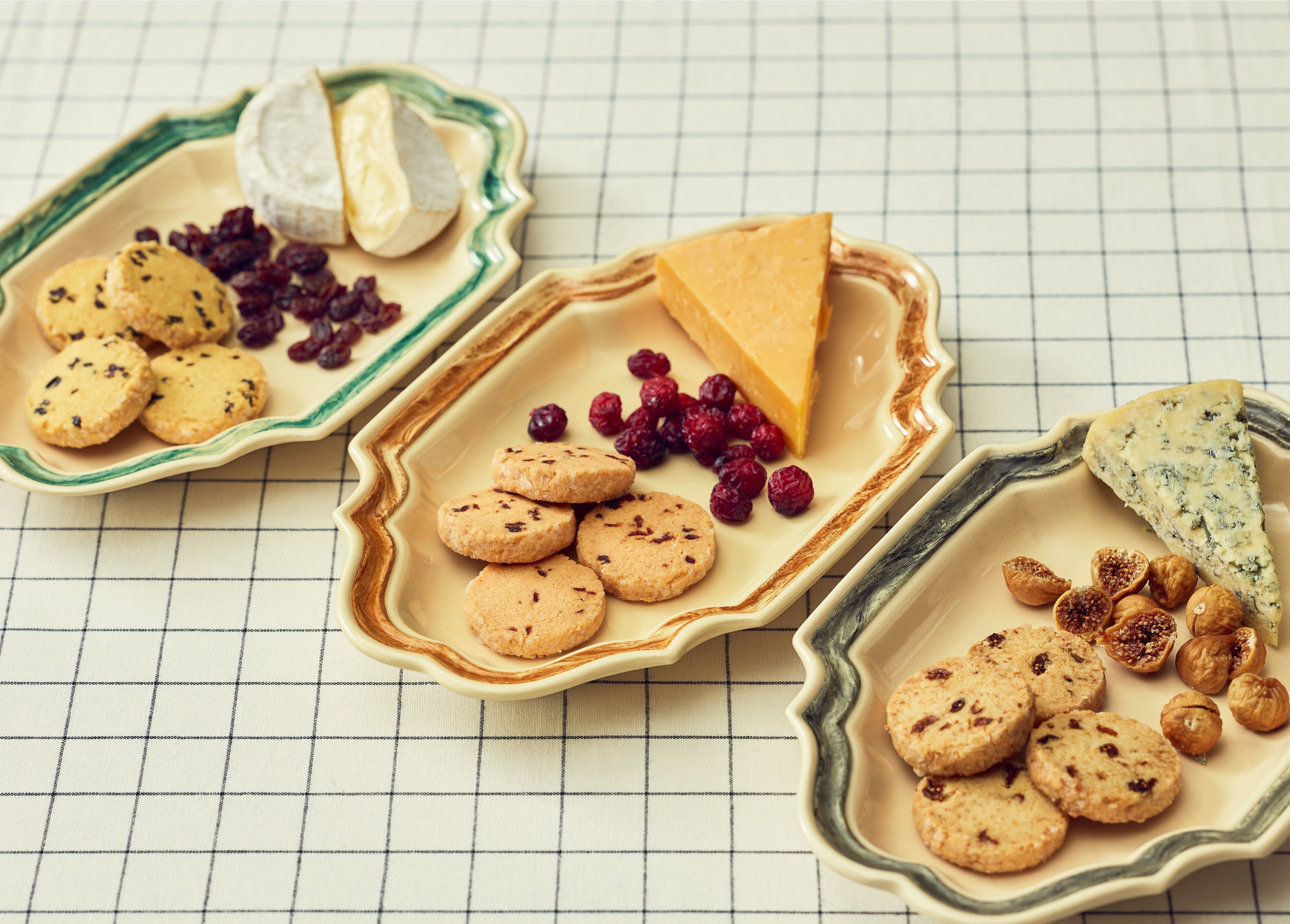 [カマンベール&レーズン、チェダー&クランベリー、ゴルゴンゾーラ&イチジク 各1個]