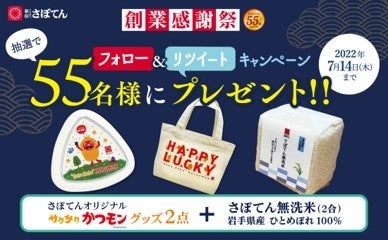 創業感謝祭の開始に合わせ、さぼてん公式Twitterでは55周年を記念したフォロー&リツイートキャンペーンを7月1日から14日まで実施いたします。