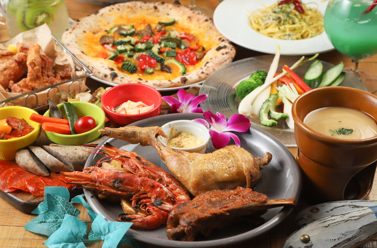 「釜焼きピザ」、「生パスタ」、「ガーリックシュリンプ 」など本格的なオリジナルメニュー