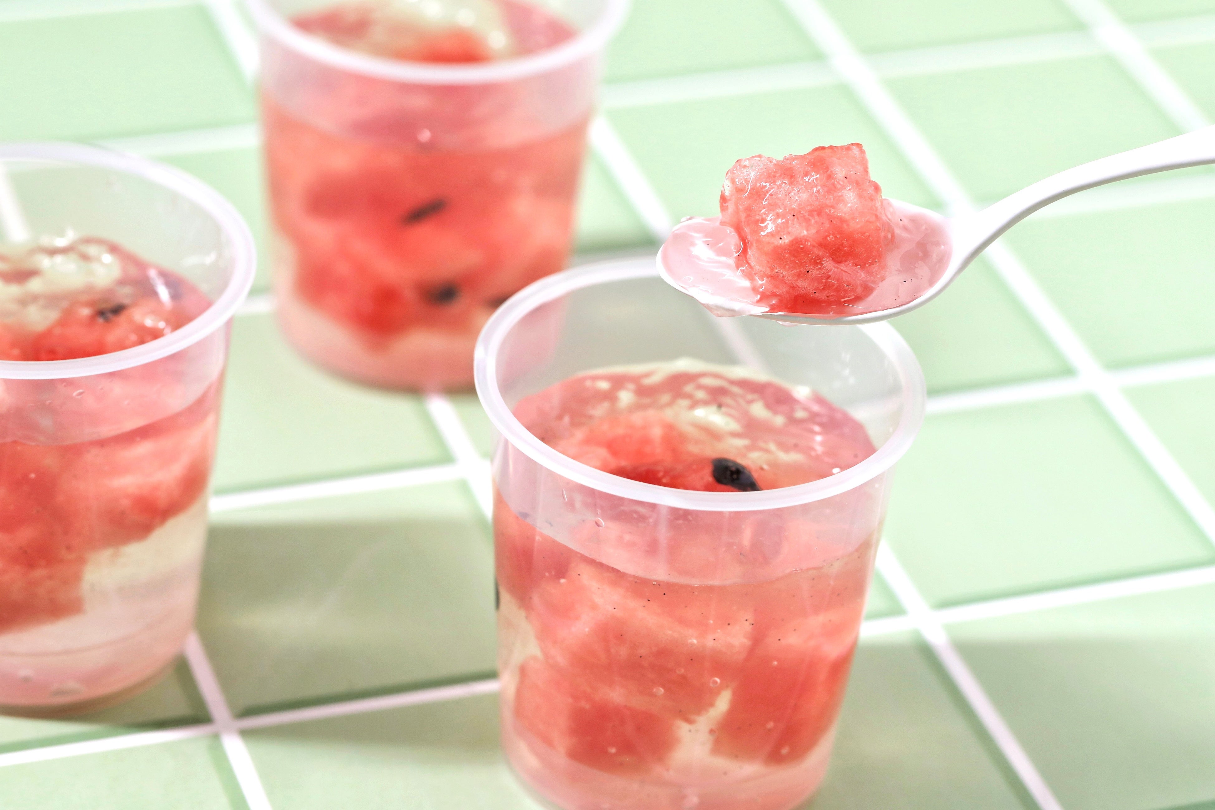 なめらか食感が人気のパステルのゼリーの夏季限定フレーバーとして、爽やかな夏の果実”スイカ”を使用した商品を販売いたします。子どもから大人まで大好きな夏の風物詩のスイカ。そんなスイカの甘くみずみずしい旨みをぎゅっと詰め込みました。シャキッとした旬のスイカと、のど越し良くなめらかなゼリーの食感の違いをお楽しみいただけるスイーツです。