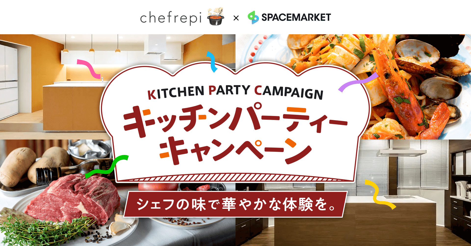 あらゆるスペースを貸し借りできるプラットフォーム「スペースマーケット」を運営する株式会社スペースマーケット(本社:東京都渋谷区、代表取締役社長:重松大輔、以下、スペースマーケット)は、「efoo(イフー)」(所在地 : 東京都杉並区、代表 : 山本 篤)が運営する、シェフ自身が調理解説する食材キット付きオンライン料理教室サービス「シェフレピ」と連携し、スペースマーケットに掲載されている本格的なキッチン付きスペースで、シェフ監修のレシピを作って楽しむ「キッチンパーティーキャンペーン」を2022年6月28日(火)より開始いたします。