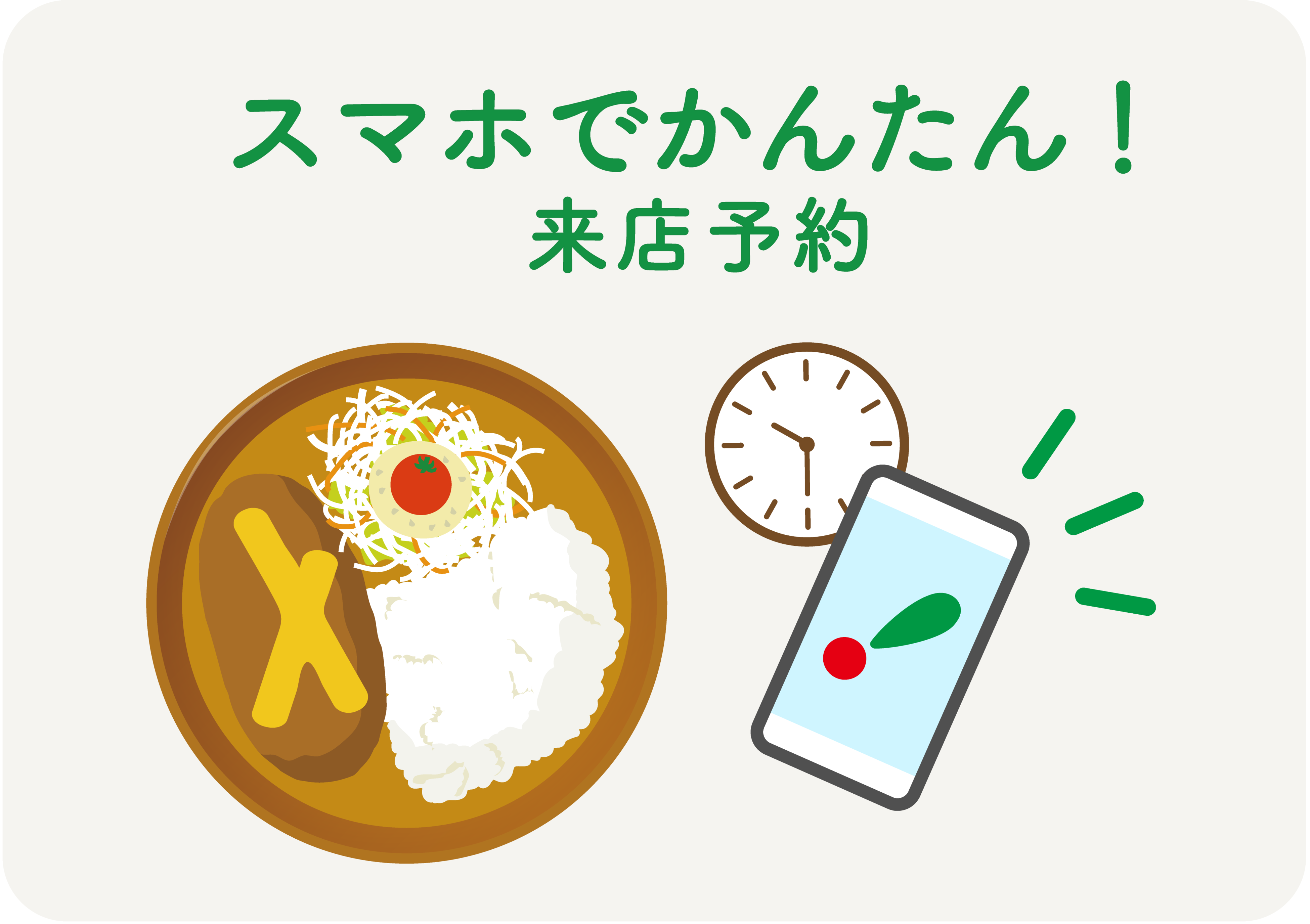 ※お席を確保する予約ではございません。店内の混雑状況によっては待ち時間が発生する場合がございますので、予めご了承ください。