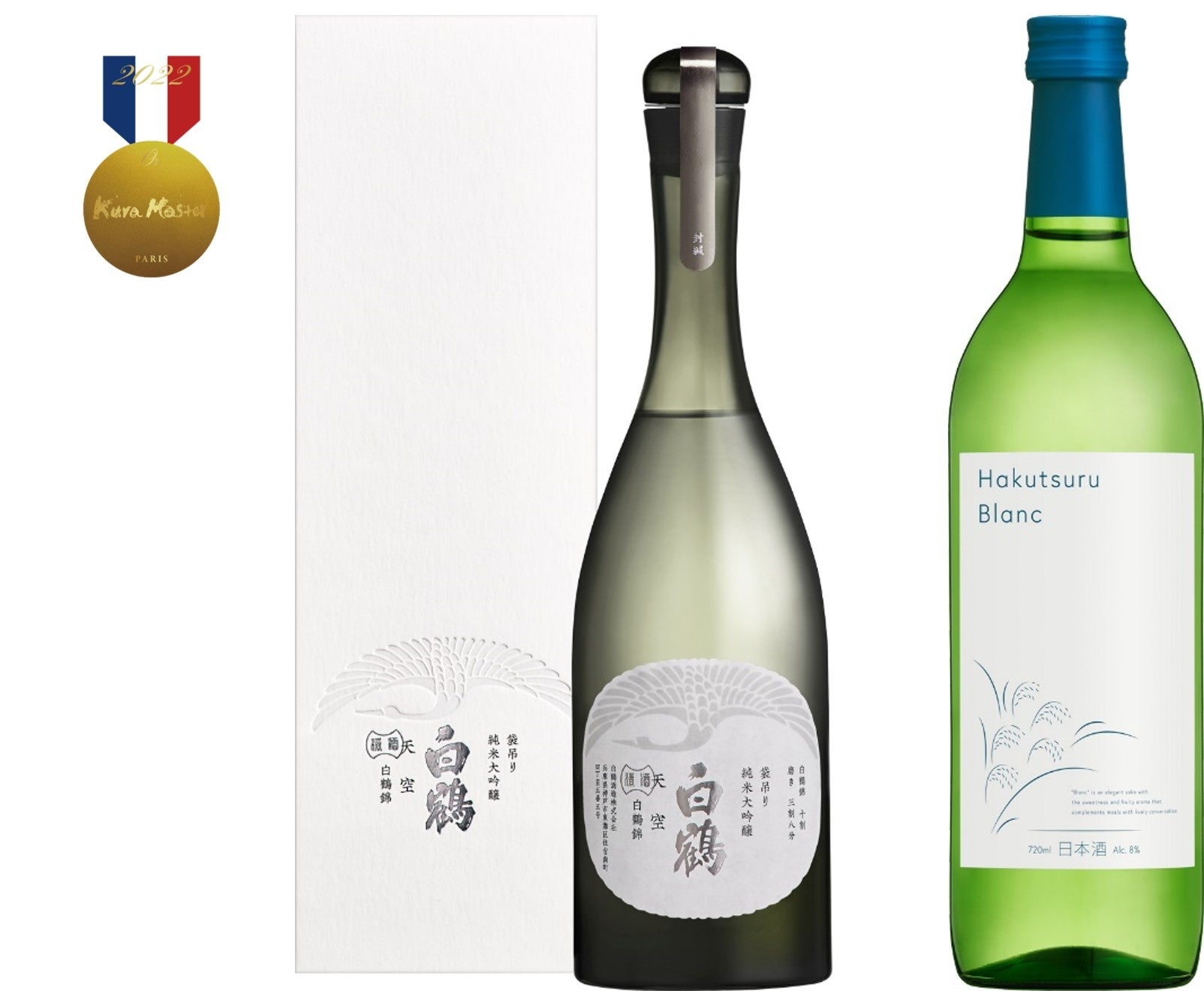 白鶴酒造株式会社の「超特撰 白鶴 天空 袋吊り 純米大吟醸 白鶴錦720ml」と「Hakutsuru Blanc(ブラン)720ml」は、フランスの日本酒品評会「Kura Master 2022」のそれぞれ純米大吟醸酒部門と純米酒部門で金賞を受賞しました。