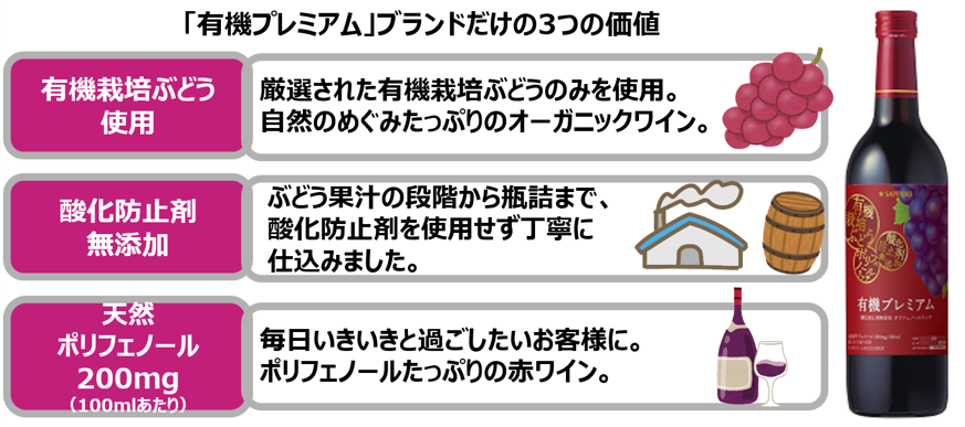 - 「有機プレミアム」は3つの価値をもつからだにうれしいワインです。