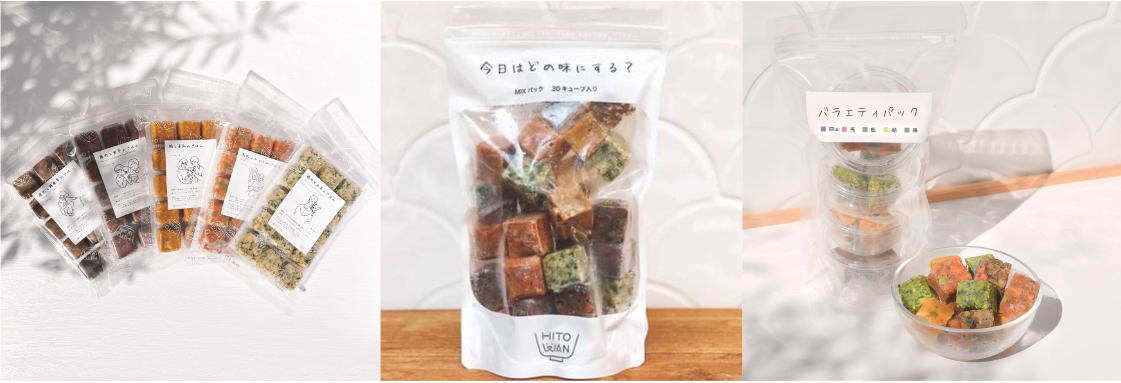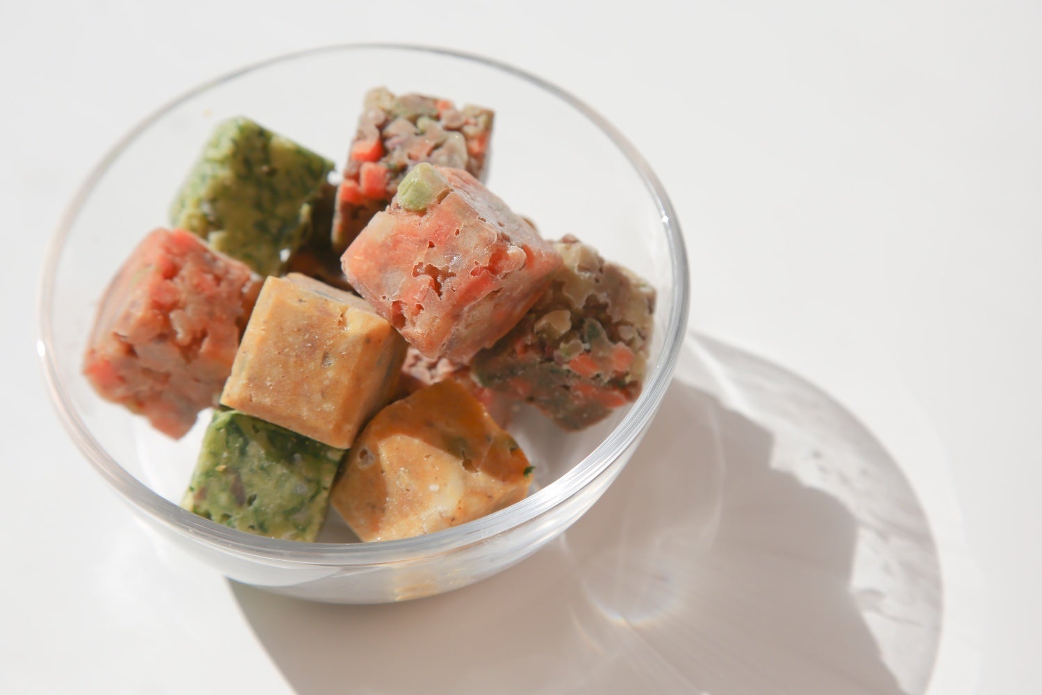獣医師・ペット栄養管理士と作る、栄養価の整った手作りごはんです。冷凍されたキューブ型なので必要な分のみ解凍するだけで、トッピングとしても主食としても、また、朝と晩で味を変えたり、並べたり、スープにしたり、アレンジが自由自在です。