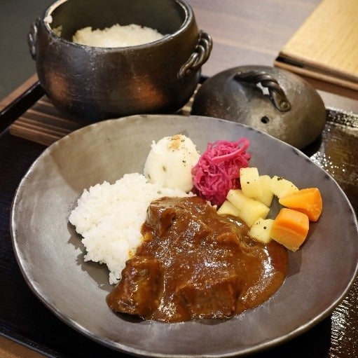もう一つの大きな特徴は、3種類のブレンド米から選べる「土鍋ごはん」。ルウの開発に力を入れる店はたくさんありますが、米の銘柄やその炊き方にここまでこだわっている店は少数派。それが「新感覚系」と呼ばれる理由です。注文後、一人前ずつ土鍋で炊き上げられるため、約20分の待ち時間が必要ですが、それでも「食べる価値あり」と評判です。カレーとごはん、それぞれにこだわりつつ、まさに両者の“一体感”が実現された一皿です。