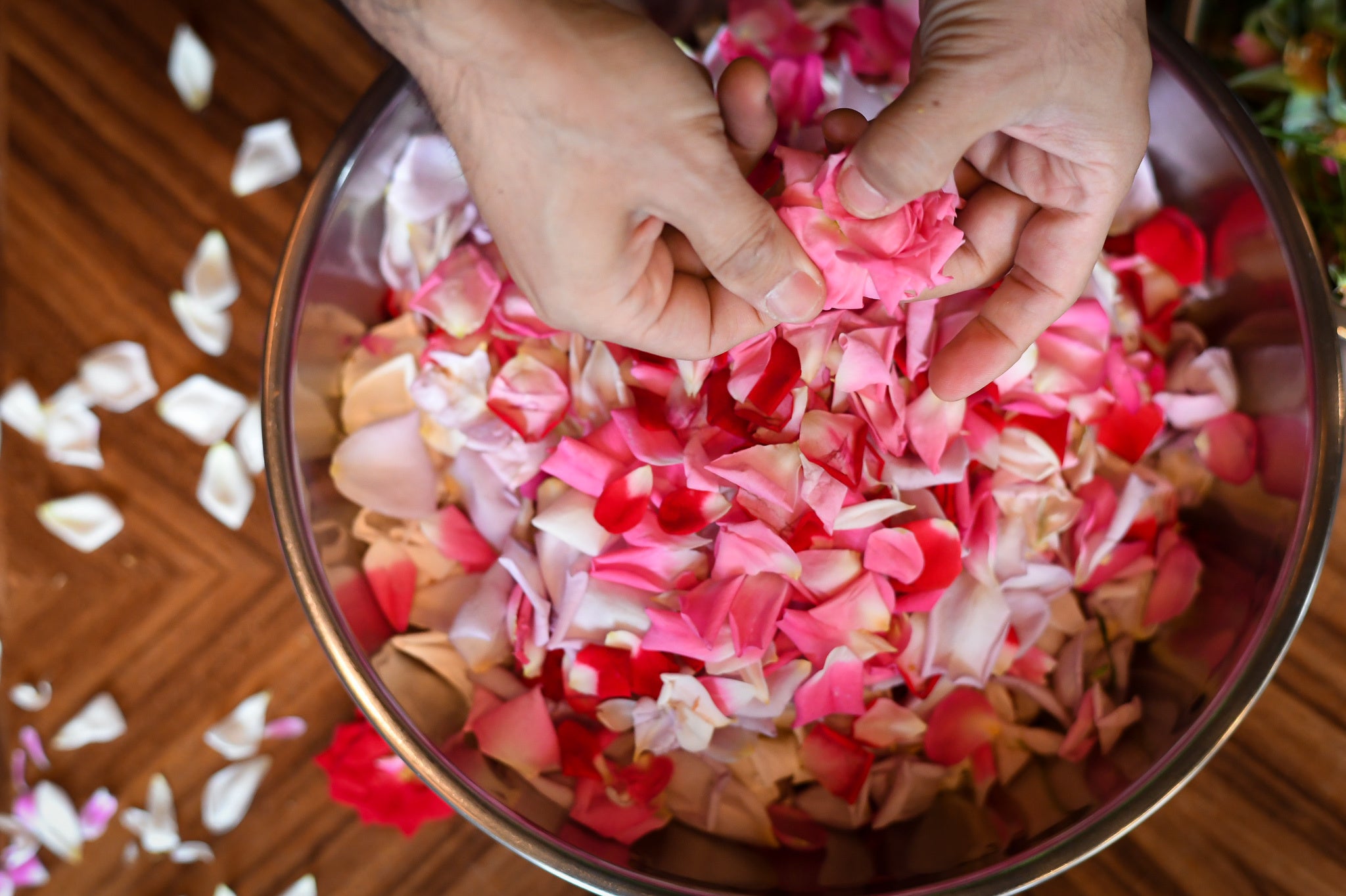 創造的であたらしい花食体験「美味しい花体験」の創作に取り組むエディブルフラワー研究所。花のポテンシャルを最大限に引き出した「飾り以外」の創造性を追い求めて、各業界のトップクリエイターと連続的にコラボレーションを展開します。今回はイクアリー(表参道)の友納 滉一シェフとのコラボレーション。薔薇の優雅な香りと、桃の甘くとろける様な香りが絶妙にマリアージュした“バラと桃のクレープ”が誕生しました。