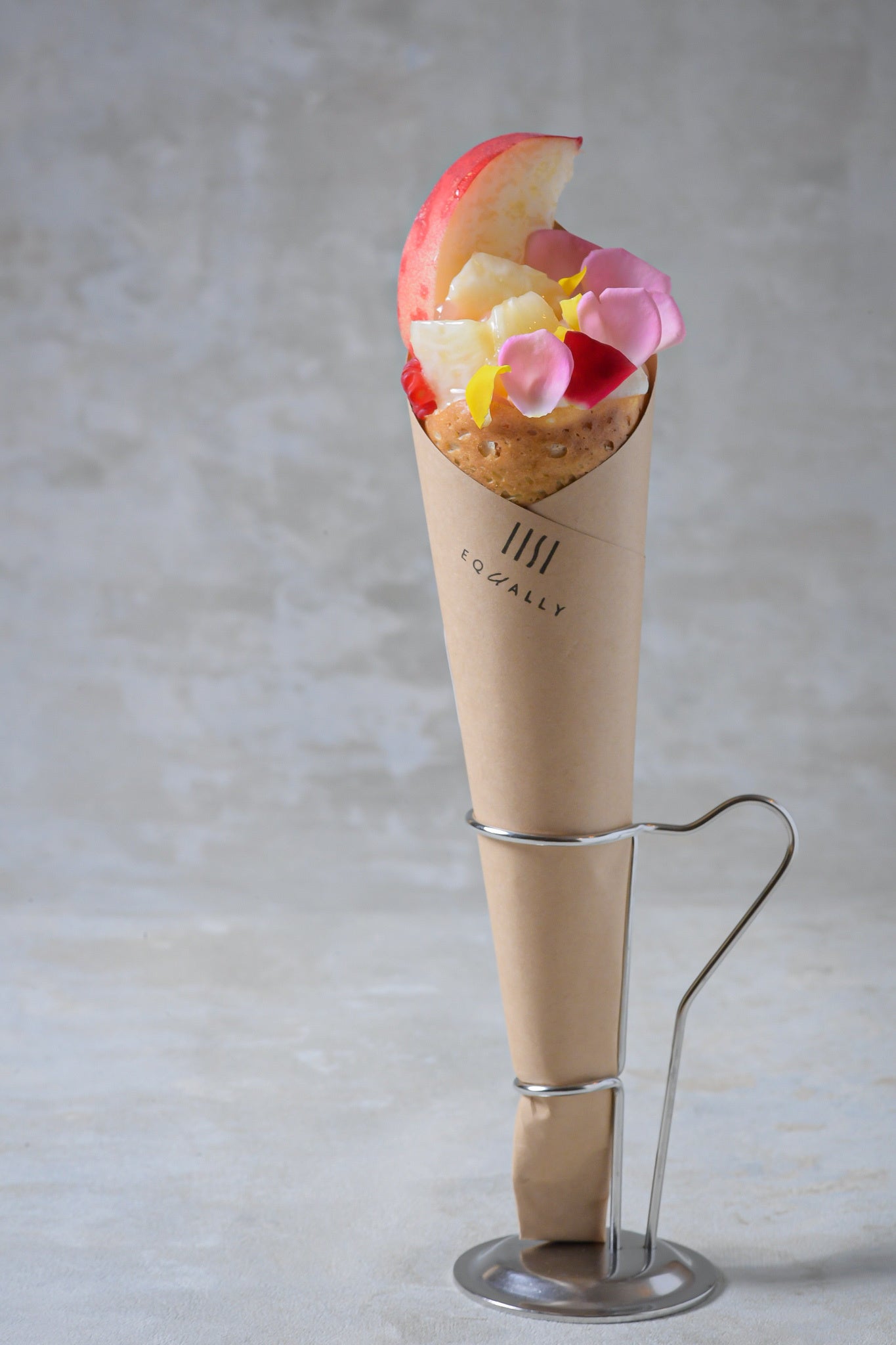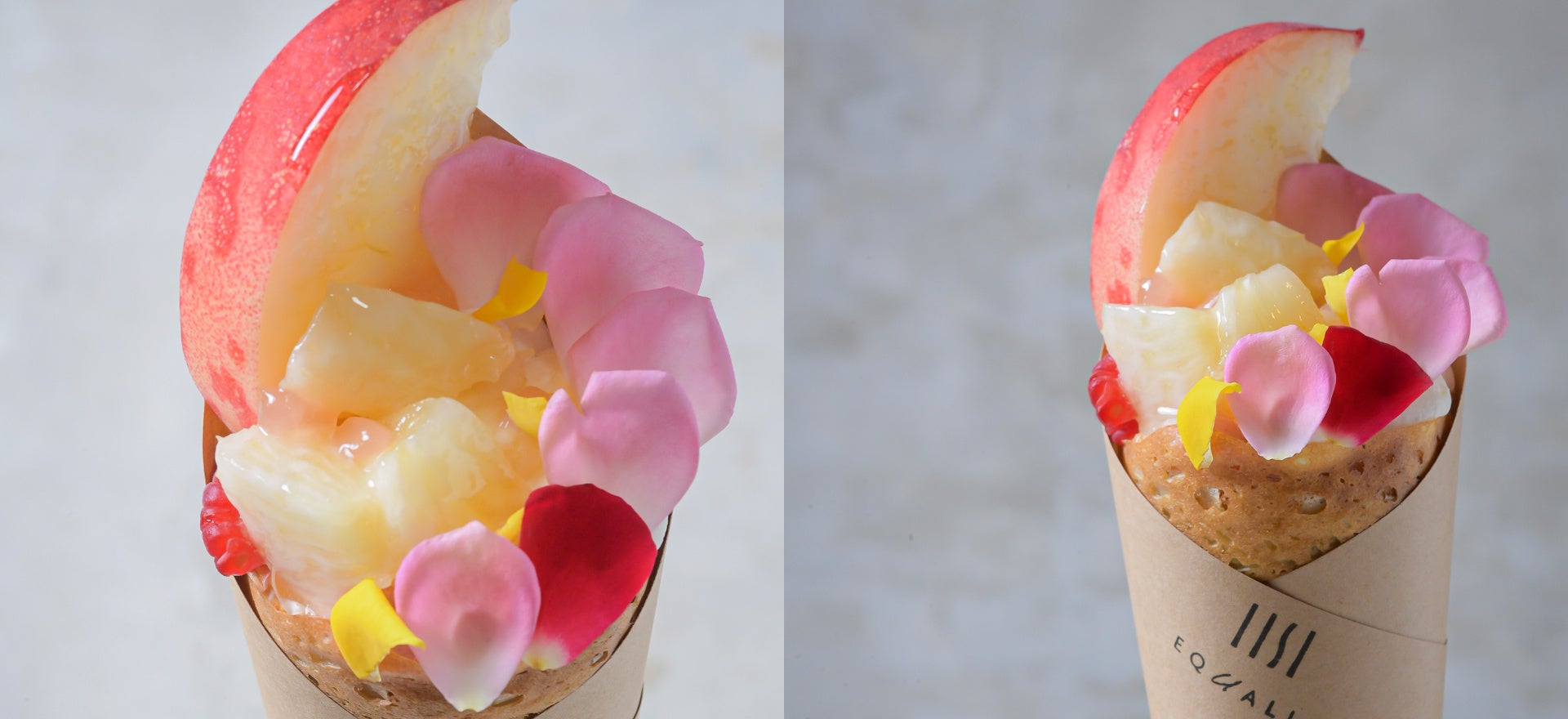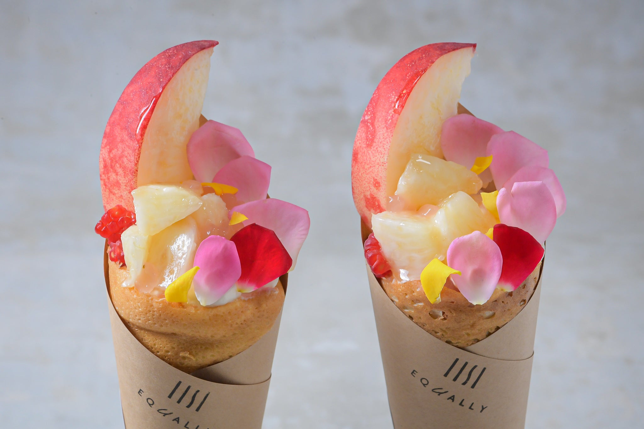 飾りにとどまらない「美味しい花体験」を創作するエディブルフラワー研究所(運営:100%化学農薬不使用のエディブルフラワー専門店EDIBLE GARDEN 代表 小澤 亮)は、催事で最大3時間待ちの人気クレープ店『Equally(イクアリー)』の友納 滉一シェフとコラボレーション。7月限定で“バラと桃のクレープ”『クレープ・ローズペッシュ- crepe rose pêche -』(2,540円税込)』を販売します。