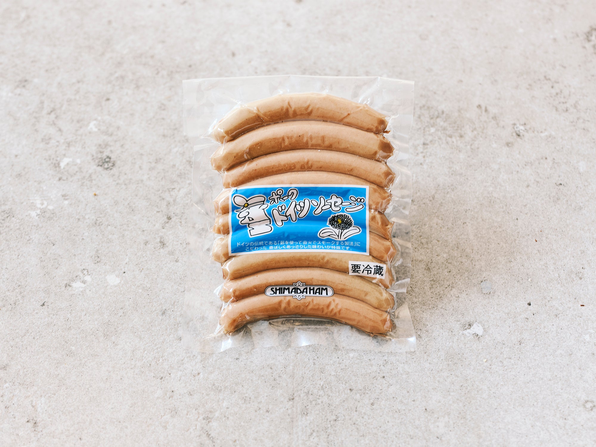 嶋田ハムの「ドイツポークソーセージ」は、100%国産の新鮮な豚肉を使用し、先代から守り継がれたドイツの職人技術が活きる、創業以来ロングセラーの手造りドイツソーセージです。