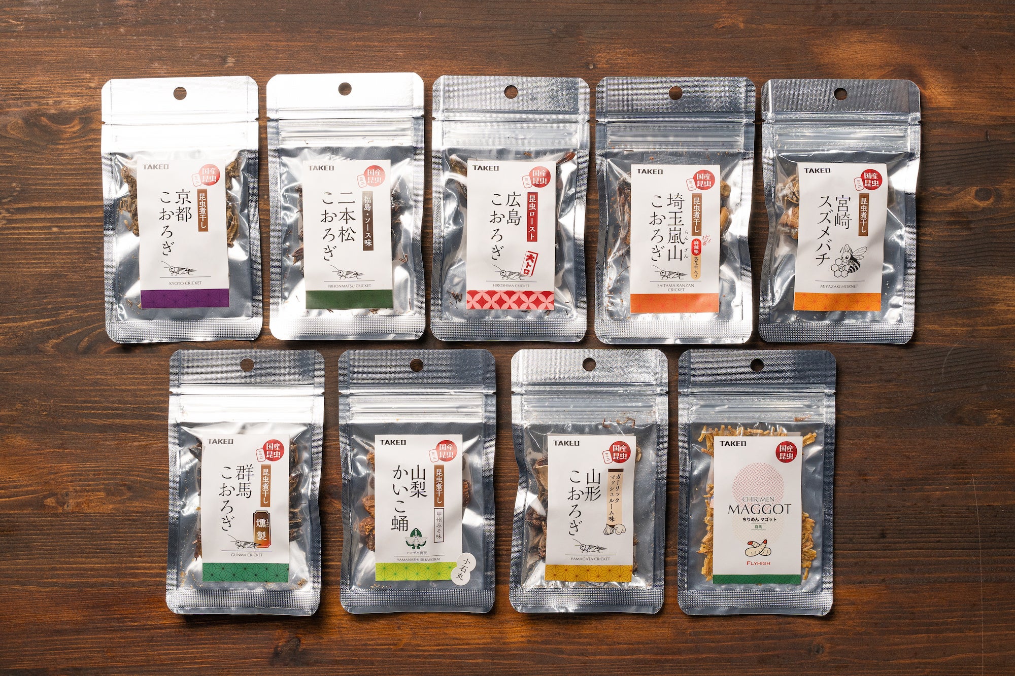 昆虫食の中で知名度の高いイナゴ以外にも、カイコやスズメバチなど様々な昆虫を使用した商品をご用意しました。昆虫も肉や魚と同様に、種類が変われば香りや食味も大きく異なります。20種もの昆虫が一堂に介すこの機会に、是非一度お試しください。