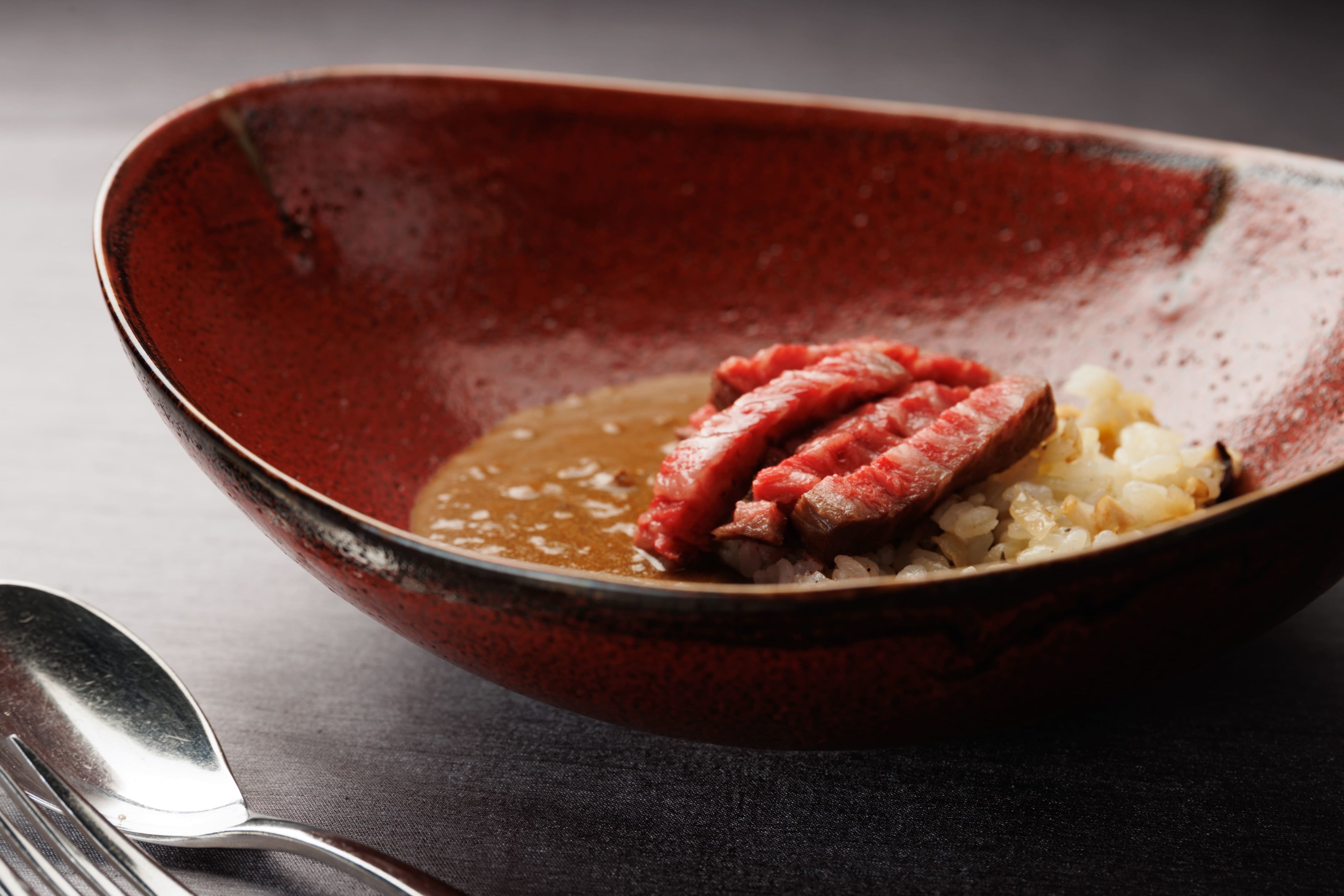和牛肉を忍ばせたルウは赤ワインを使用することでより濃厚になり、生姜やニンニクなどの香味野菜をじっくり炒めることでより奥深いカレーに仕上がりました。