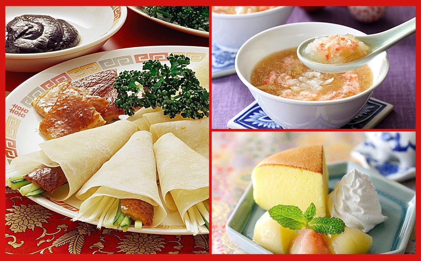 そして、プレミアムコースでは、肉厚でジューシーな『北京ダック』、こだわりのスープにフカヒレのコクが溶け込んだとろーり熱々の『ふかひれスープ』、ふわふわ食感の『台湾カステラ』が加わり、全部で9種類を贅沢にご堪能いただけます!