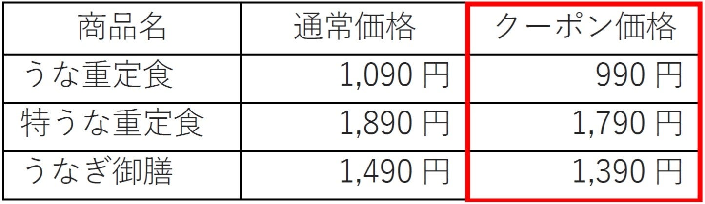 ※『[テイクアウト]うな重』、『[テイクアウト]特うな重』は、『なんどもパス』の割引対象外です