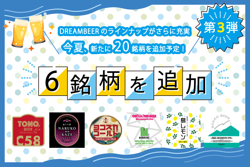 この度、新たに6銘柄がドリームビアに追加されることとなりました。自宅にいながらまるで旅をするように全国のクラフトビールを楽しむことができるプラットフォーム、ドリームビアに参画するブルワリー/取り扱い銘柄は、60ブルワリー135銘柄となりました。