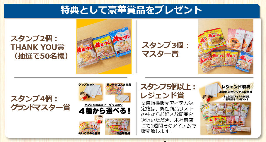※特典は重複して申し込まれた場合は、最も必要スタンプ数が多い特典が採用されます。