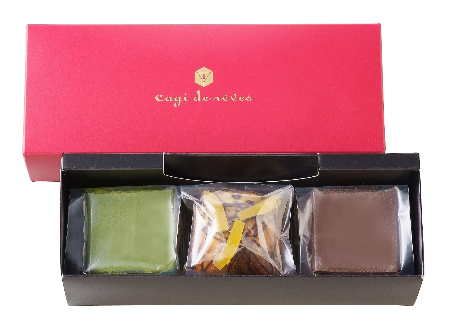 ◆左:カタシモワイナリー×キャギ ド レーブ ショコラアソート 3個入り 1,080円(税込)