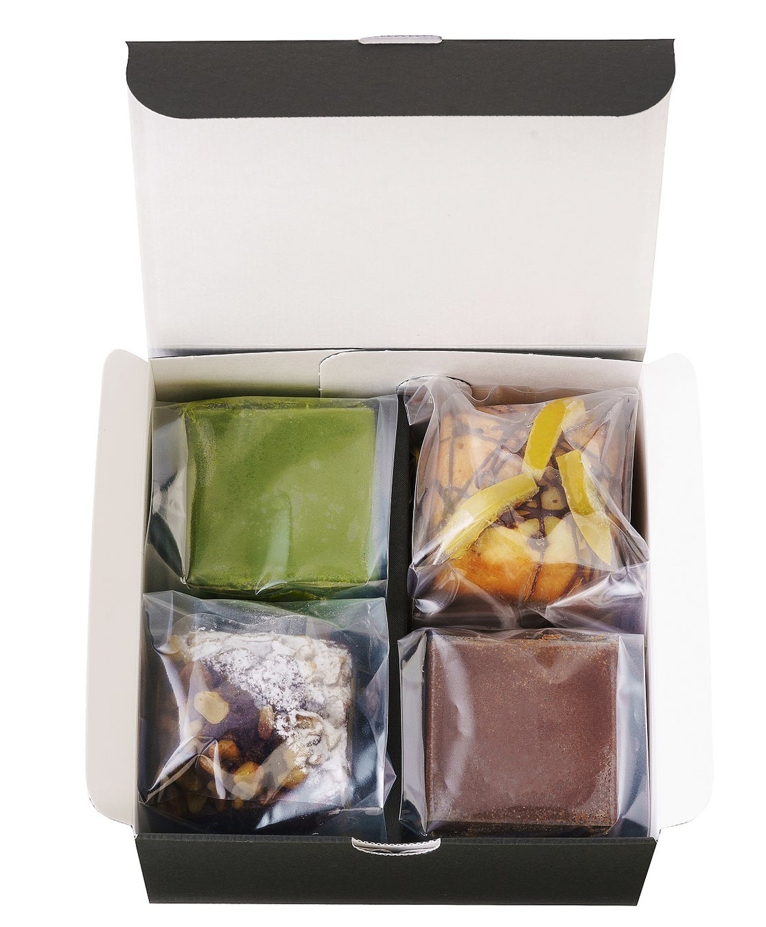 店頭では、4種類のキューブケックの中からお好きなものを選んで詰め合わせることができます。