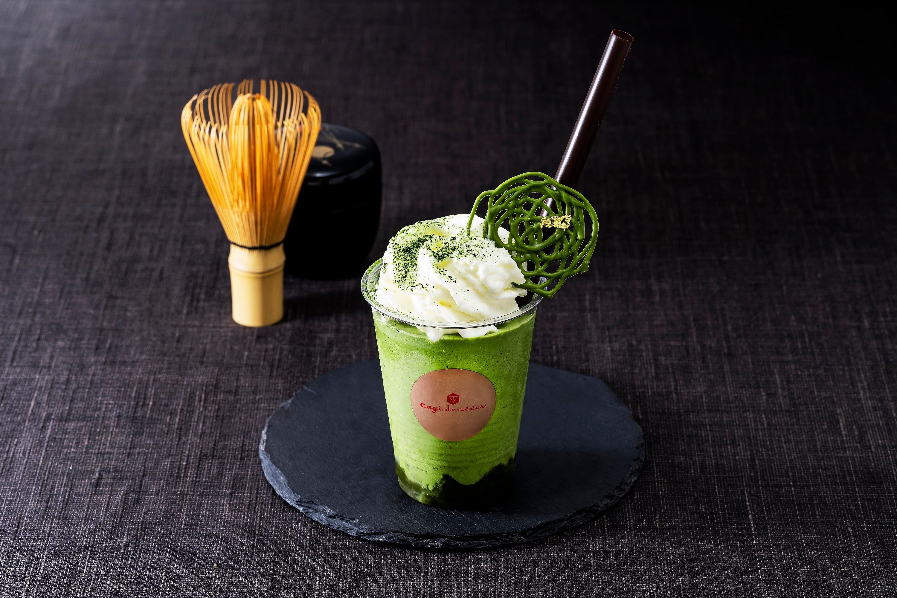 バニラのような上品な香りのあるカカオ分38%のショコラと爽やかな香りの抹茶を合わせたフラッペ、煎茶本来の甘味(旨味)を優しく感じられるジュレの上に、泡のようなふわふわ食感のエスプーマとパリパリ食感の抹茶ショコラを添えました。暑い夏に飲みたくなる爽やかな味わいです。