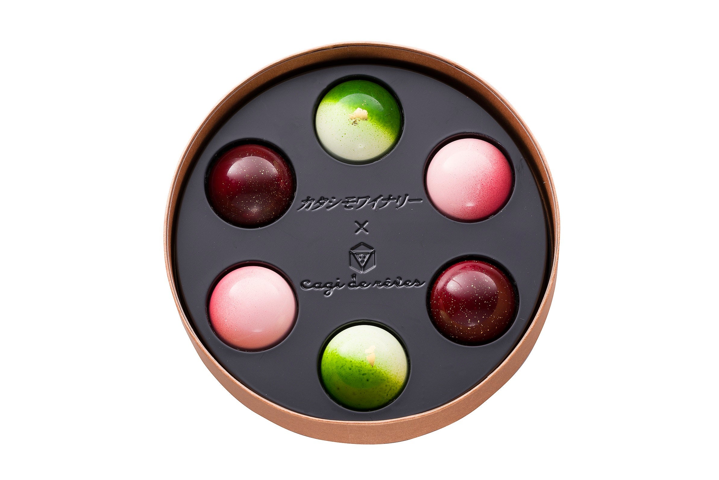 ◆右:カタシモワイナリー×キャギ ド レーブ ショコラアソート 6個入り 1,944円(税込)