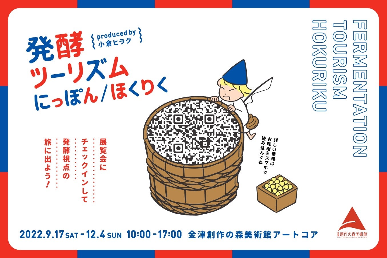 金津創作の森美術館((公財) 金津創作の森財団)は、北陸3県(福井県・石川県・富山県)にて、2022年9月17日(土)~12月4日(日)まで企画展「Fermentation Tourism Hokuriku ~ 発酵から辿る北陸、海の道」(通称:発酵ツーリズムにっぽん / ほくりく」を開催します。この展覧会は、発酵デザイナーの小倉ヒラク氏をキュレーターとして招聘し、全国47都道府県を巡って出会った知られざるローカル発酵食品を発掘。「発酵視点」で日本の価値を再発見する旅に誘います。