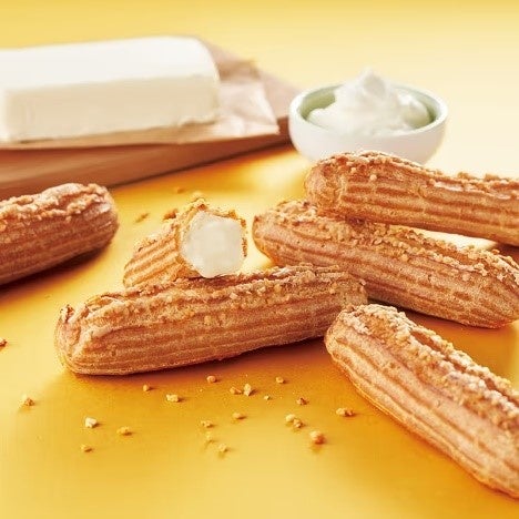 ■商品特徴:クロッカン生地にアーモンドダイスをトッピングしたシュー生地に、ふわっと軽いクリームが入ったバトンシュー。