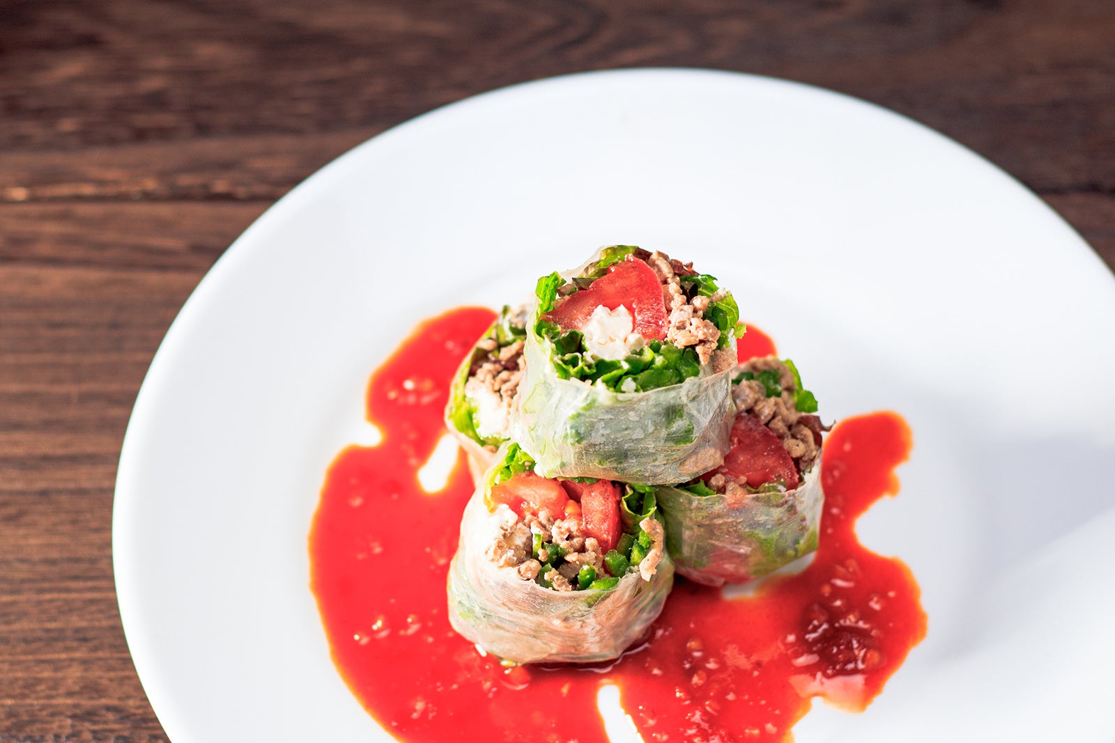 トマトとクリームチーズが アクセントのピリッと辛い生春巻き♪