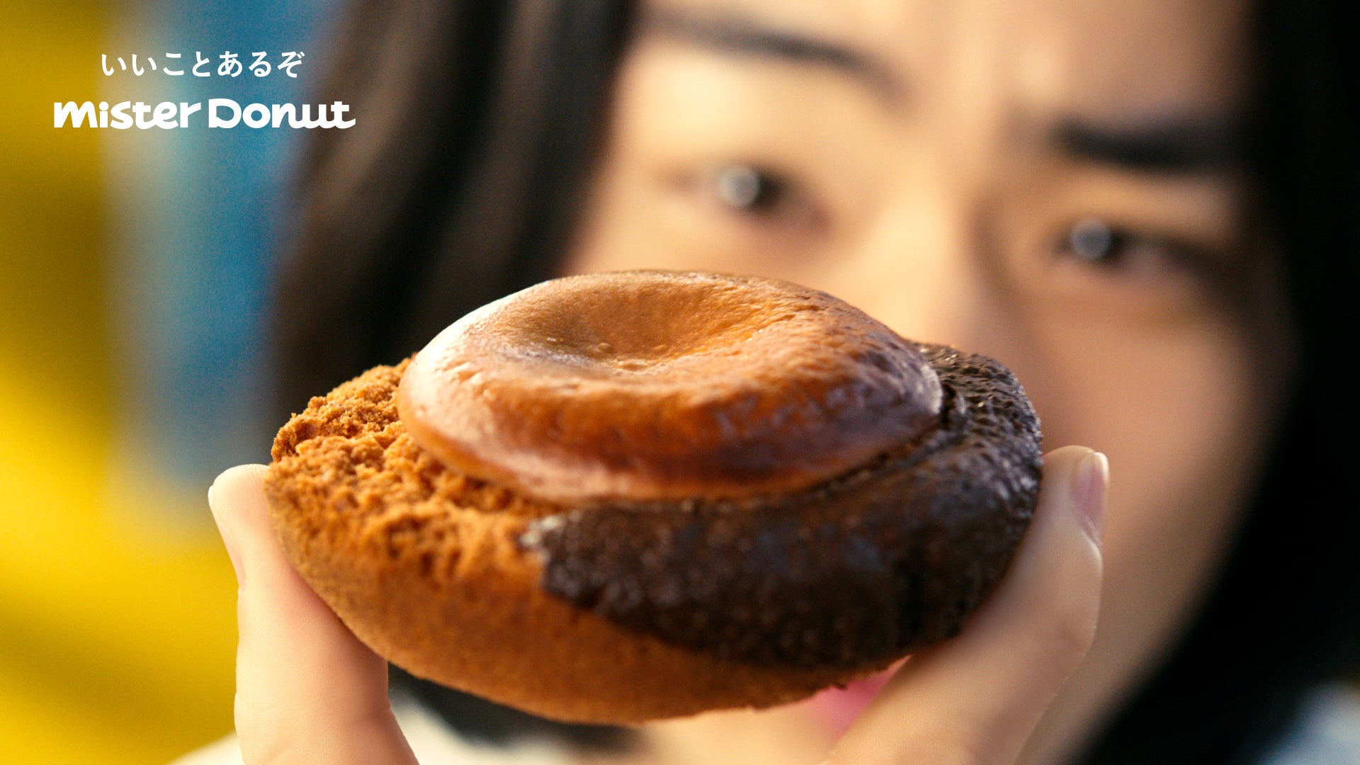 <ミスタードーナツ新TVCM「チョコとチーズがタルってる(リンゴ)」篇より>