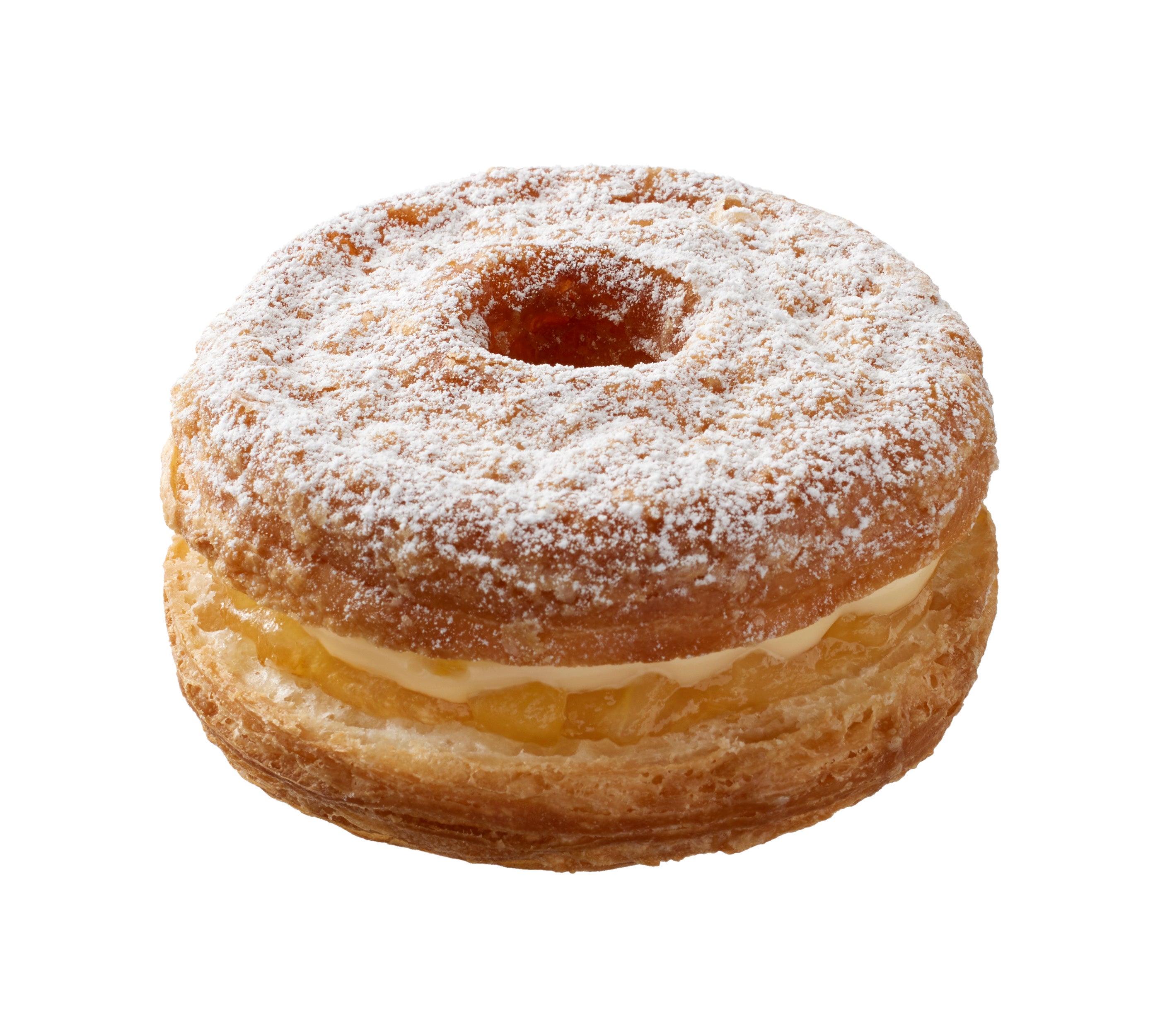 『RINGO』のパイ生地を、クロワッサンドーナツ生地で表現。アーモンド風味グレーズをつけてオーブンで焼き上げ、サクサク食感と香ばしさを楽しめます。リンゴのシャキシャキ食感にこだわったリンゴフィリングと爽やかなレモンクリームをサンドしました。
