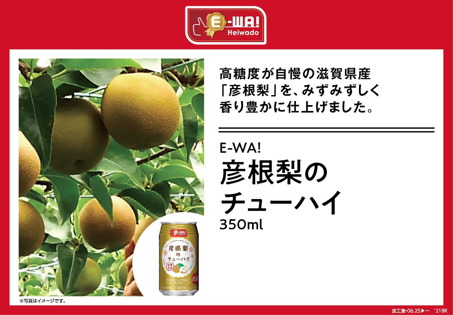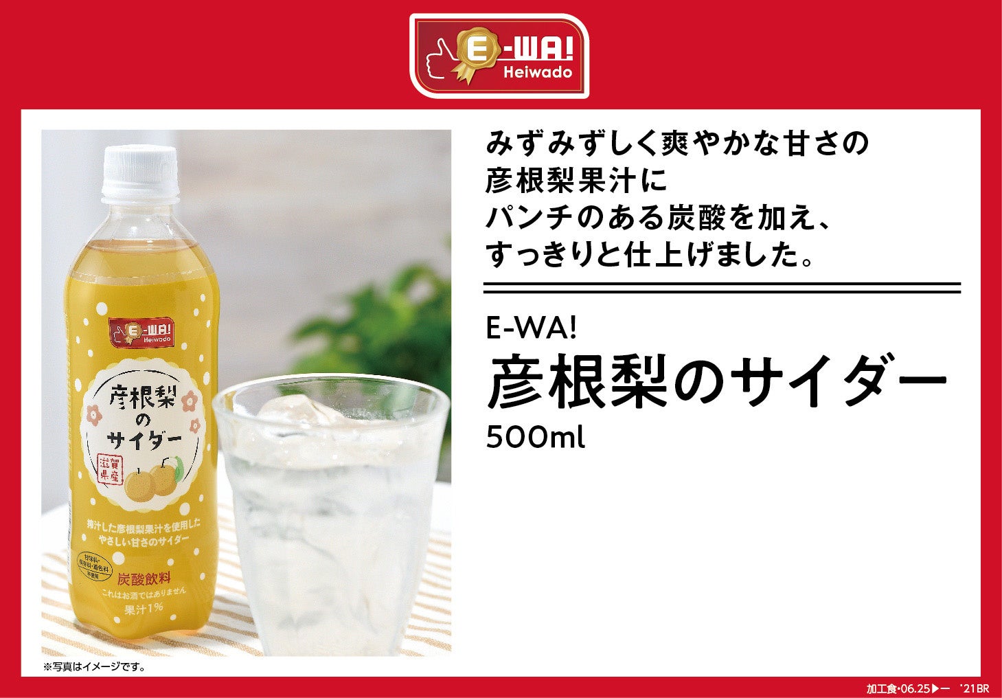 株式会社平和堂(本社:滋賀県彦根市、代表取締役社長執行役員:平松正嗣)は、平和堂こだわりブランドE-WA!の新商品として、「彦根梨のサイダー」と「彦根梨のチューハイ」を、平和堂・エールの159店舗で、今年で41周年となる「びわ湖の日」にあわせ、7月1日(金)に発売します。