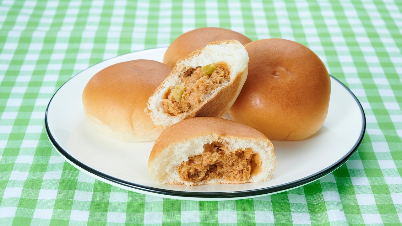 キャベツ入りメンチカツを砕いて、しっとりとしたパンに包みました。キャベツが入ることであっさり食べられます。