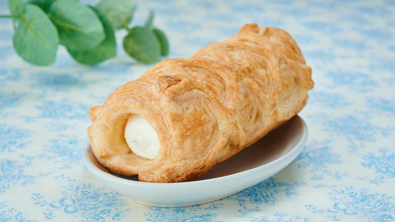サクサク食感のパイコロネに、レアチーズ風味のクリームをいれました。