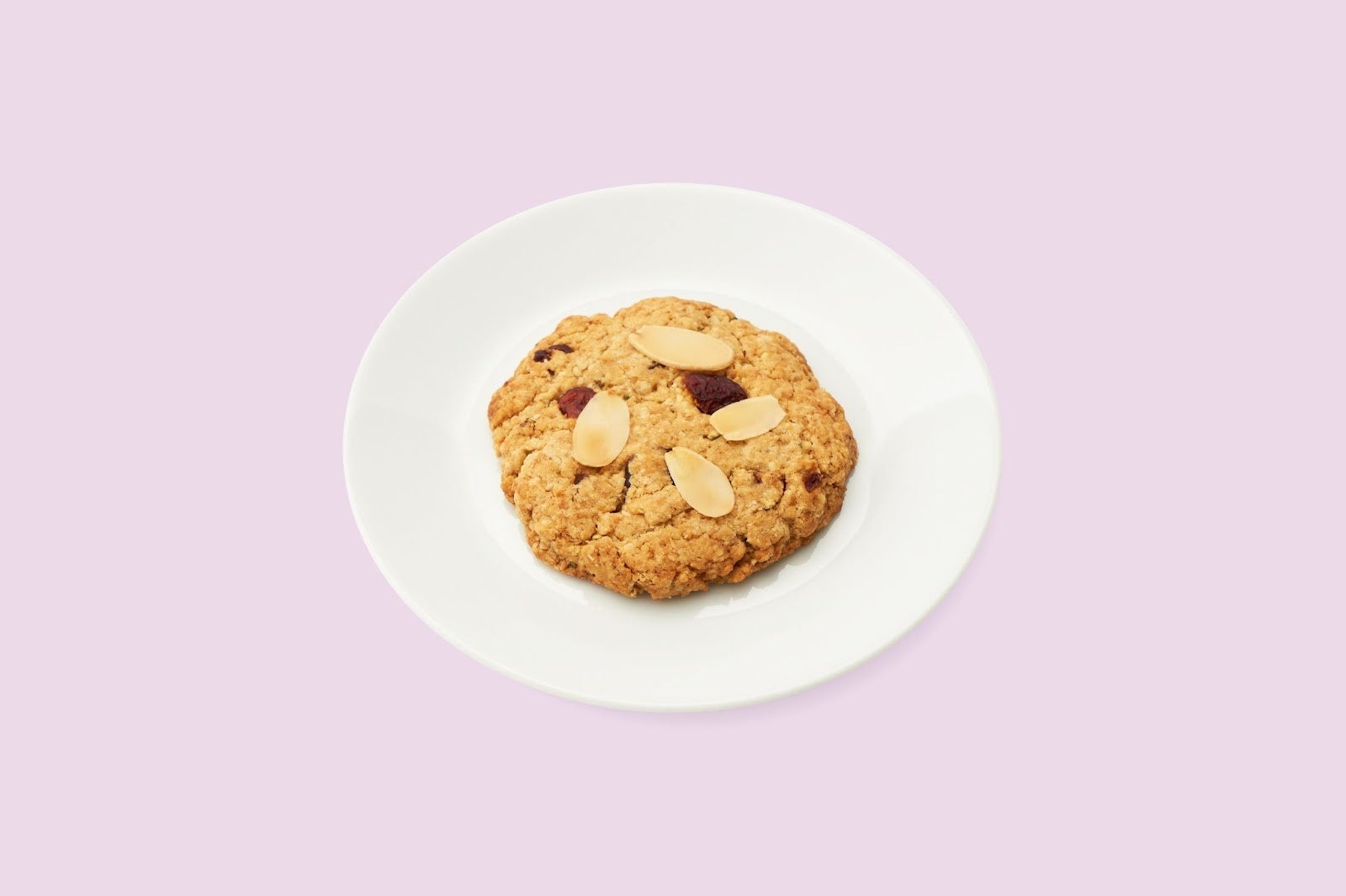 小麦粉、オートミール、オリーブオイル、甜菜糖といった植物性の素材のみで焼き上げた、地球にも身体にも優しいクッキーです。さらに環境観点でも、栄養観点でも注目のスーパーフード「ヘンプシード」と、甘酸っぱい味がアクセントのクランベリーをミックス。小腹が空いたときにオススメのシッカリ食感です。