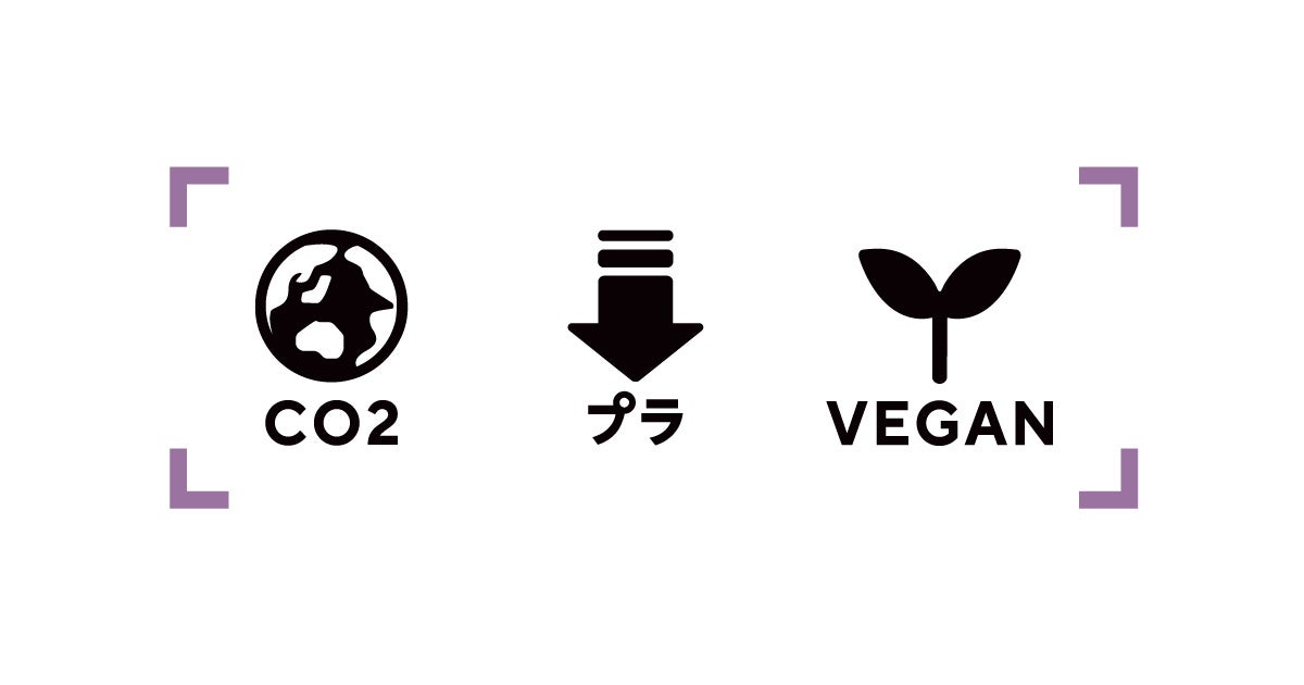 CO2削減、プラスチック削減、ヴィーガン対応についてのオリジナルマーク