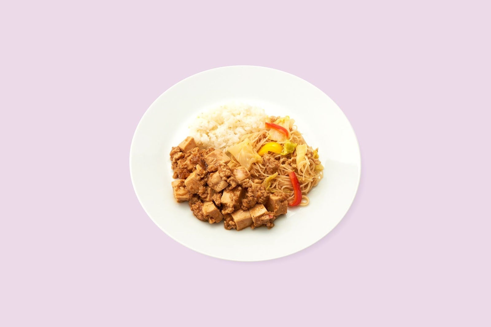 【内容:麻婆豆腐、焼きビーフン、雑穀ご飯】