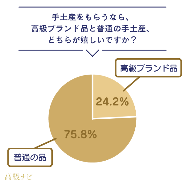 最後に、「手土産をもらうなら、高級ブランド品と普通の手土産、どちらが嬉しい?」という質問をしました。