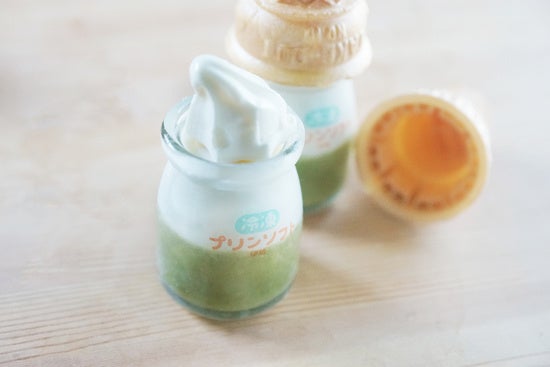 また、伊勢抹茶プリンの冴えた美しい緑色と白いソフトクリームのコントラストが映える商品です。