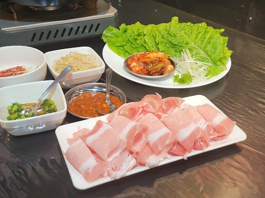 一切れが分厚いサムギョプサルと比較して、焼き上がりが早く、柔らかい食感が特徴です。