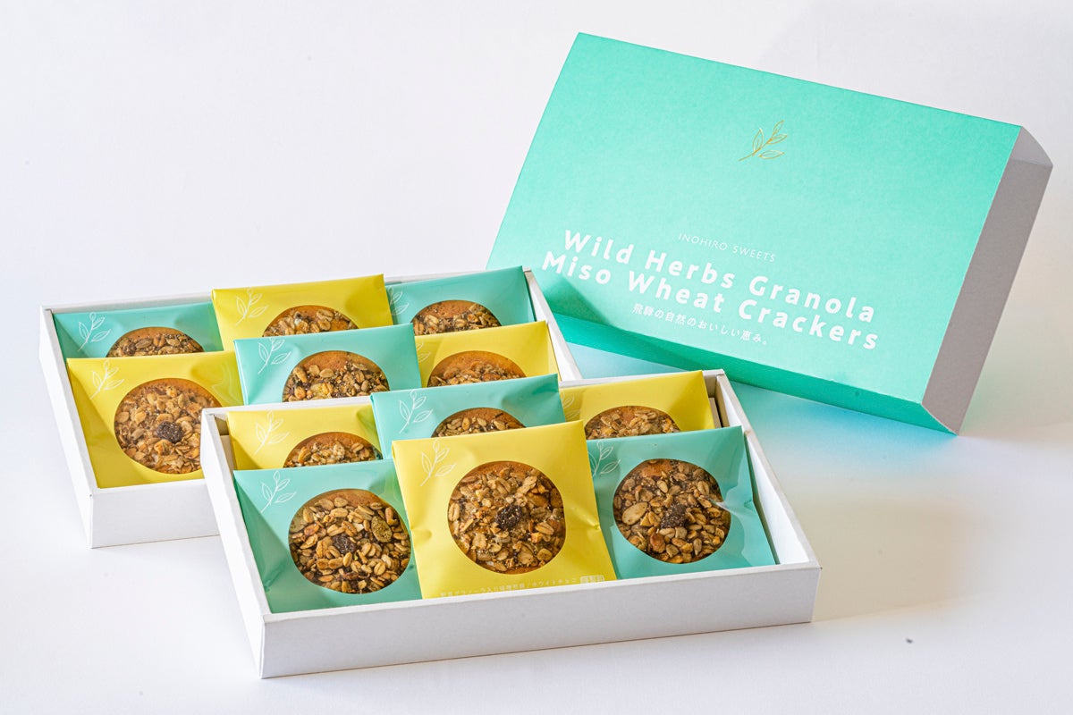 創業明治41年の老舗、井之廣製菓舗(岐阜県飛騨市)が、看板商品の味噌煎餅に飛騨の大自然で育った野草のグラノーラをトッピングした、どこか懐かしくも新しいお煎餅「野草グラノーラ入り味噌煎餅」をリニューアルし、マクアケにて販売開始しました。