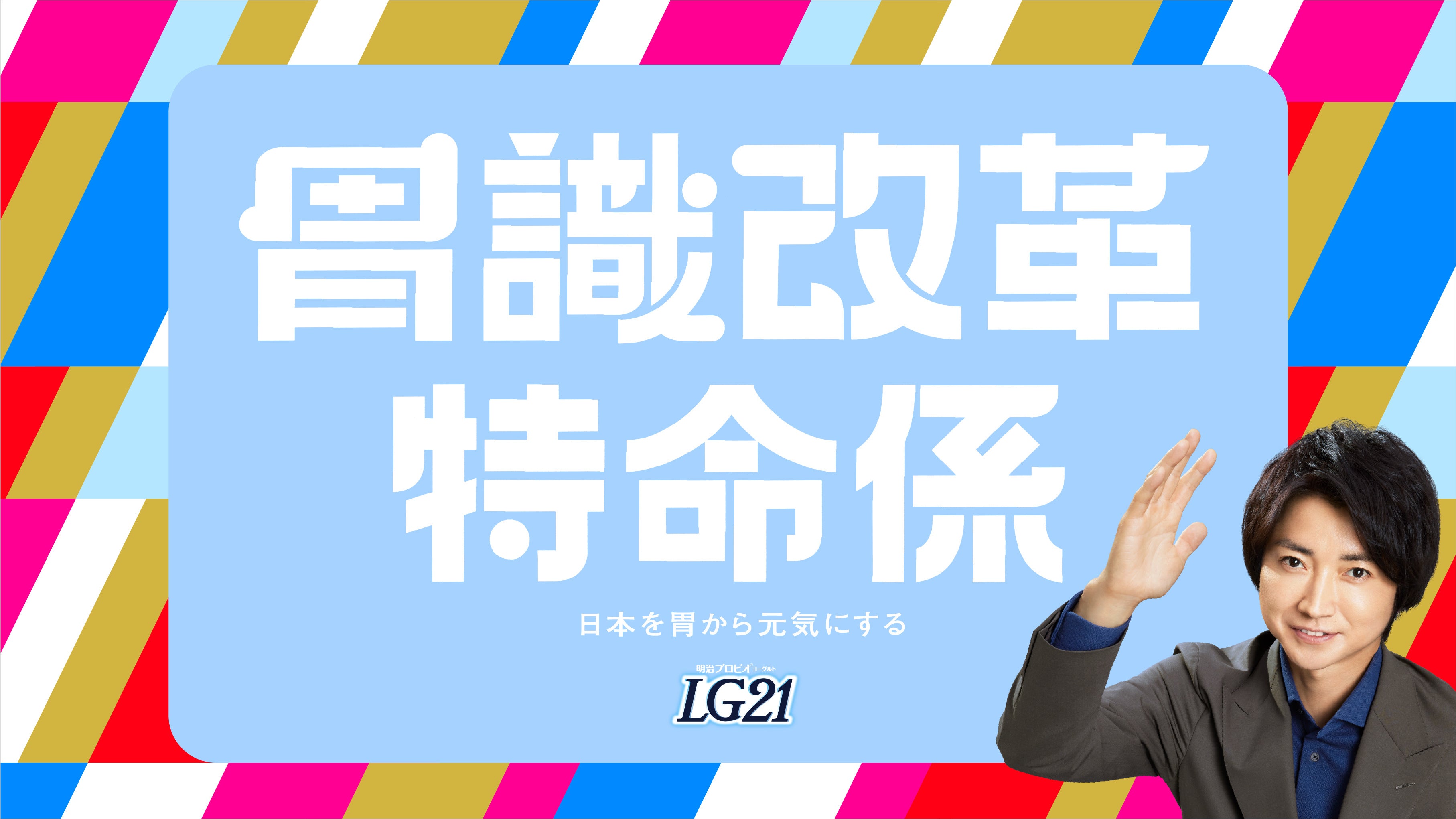 株式会社 明治(本社:東京都中央区、代表取締役社長:松田克也)は、このたび「明治プロビオヨーグルトLG21」の新CMキャラクターで、胃識改革を推進する胃識マネジャー藤原竜也さんと、当社グループ精鋭社員とともに『胃識改革 特命係』を発足します。