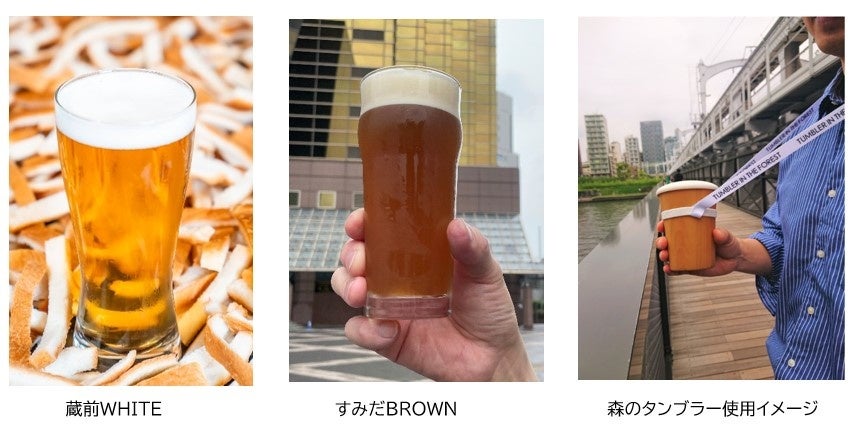 「蔵前WHITE」「すみだBROWN」は各800円で、首から下げるストラップ付きの「森のタンブラー」に注いで提供します。「森のタンブラー」は1,000円のデポジットで貸し出し、「すみだリバーウォーク」の台東区・墨田区側の両入り口に返却所を設け回収します。プラスチックカップは使用しません。