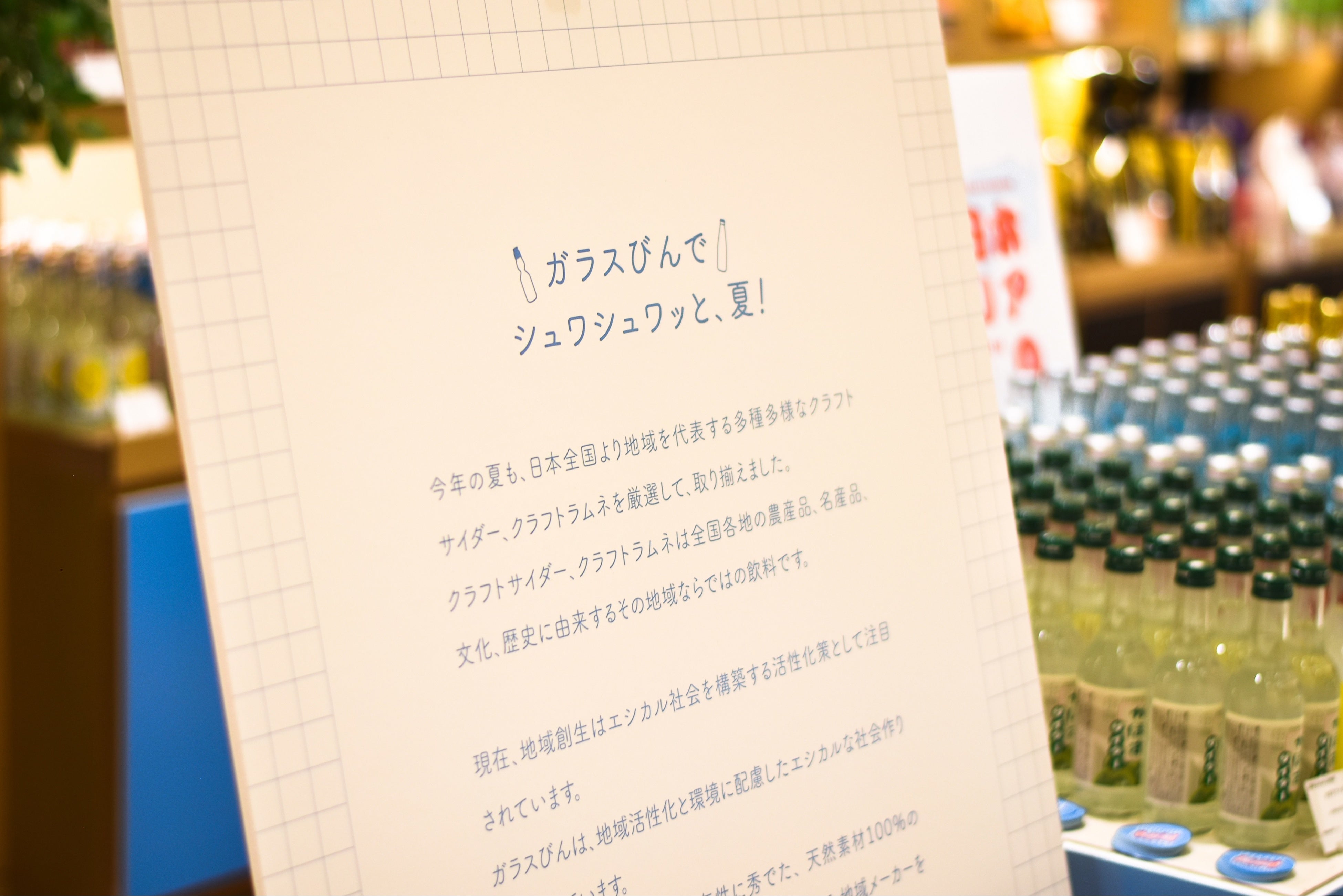 日本ガラスびん協会(会長:山村 幸治/ 東京都新宿区)は、スイーツ&デリカ Bonna/ボンナ 新宿中村屋(以下、Bonna)にて「ガラスびんでシュワシュワ市」を開催します。ガラスびんを通じて地域のメーカーを応援し「容器で選ぶ」という、新たな選択基準を伝えていく機会の創出へつなげていければと考えております。全国各地からガラスびんに入った、クラフトサイダー、クラフトラムネ、65種類以上が集結し、売り場を賑やかに演出します。
